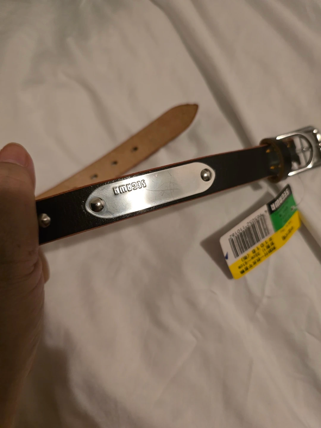 Selling a Segawa dog collar with built-in dog tag name plate in new excellent condition! It's Dark brown and sized between 35-41cm. Perfect for your furry friend!