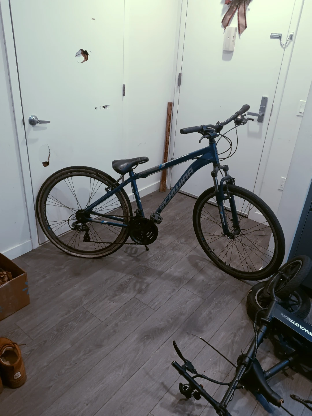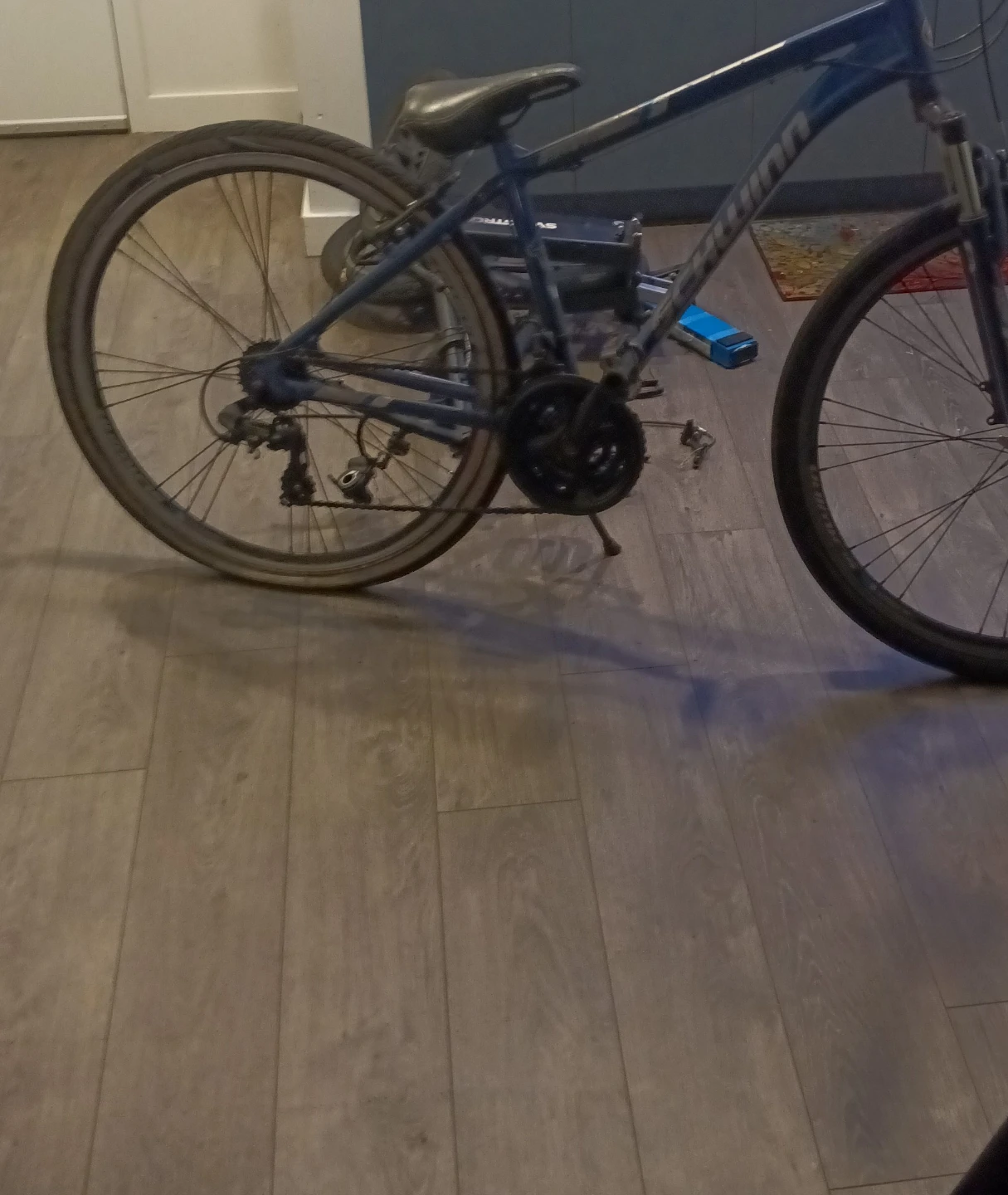 Selling a blue Schwinn hybrid bike. It's in good condition but needs a little work. if interested message me and I'll add the details of what it needs!