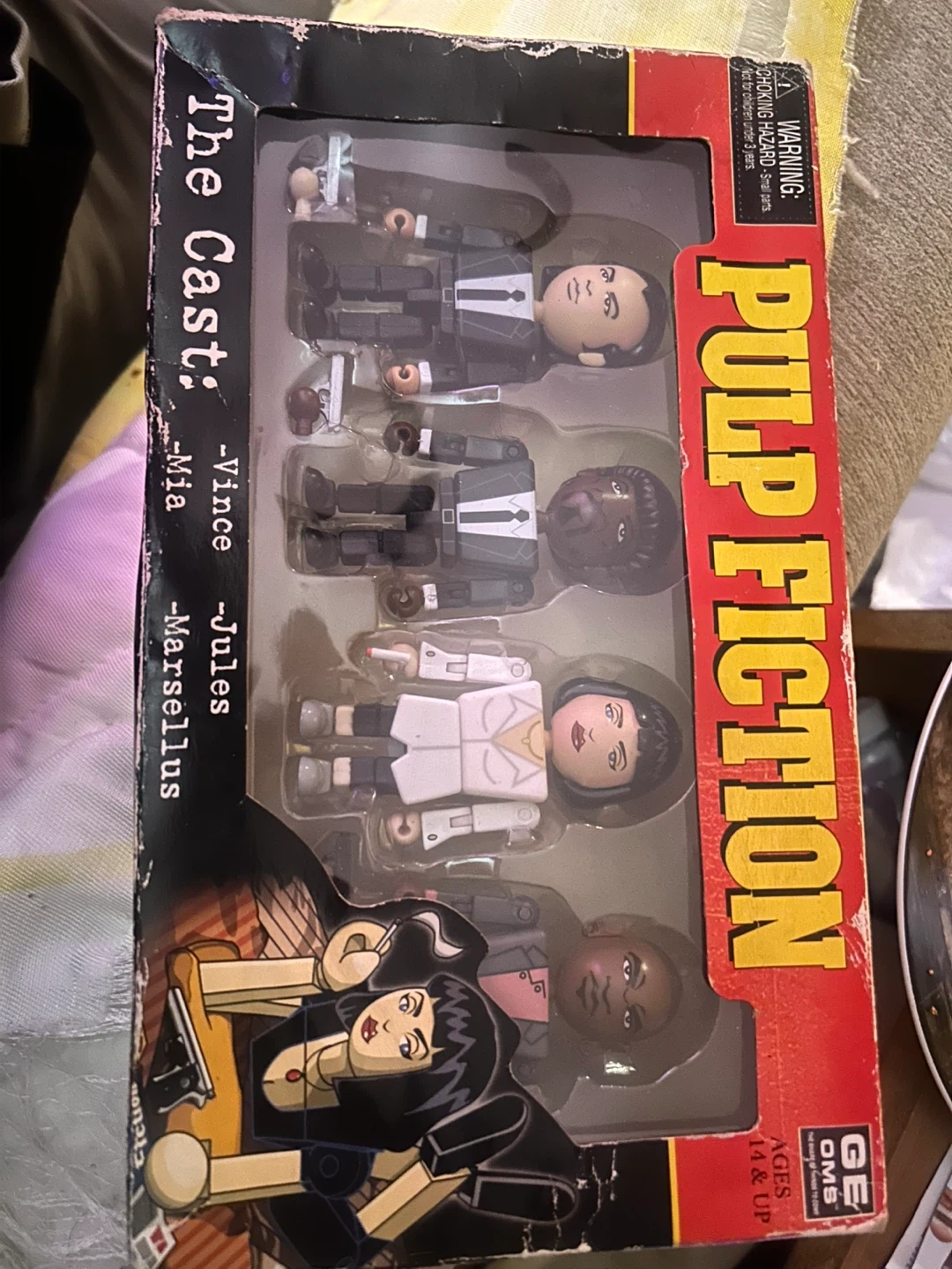 Selling a Pulp Fiction Minimates set featuring The Cast! This collectible set includes miniature figures of your favorite characters from the iconic movie. It's perfect for any Pulp Fiction fan or collector. Ages 14 & up