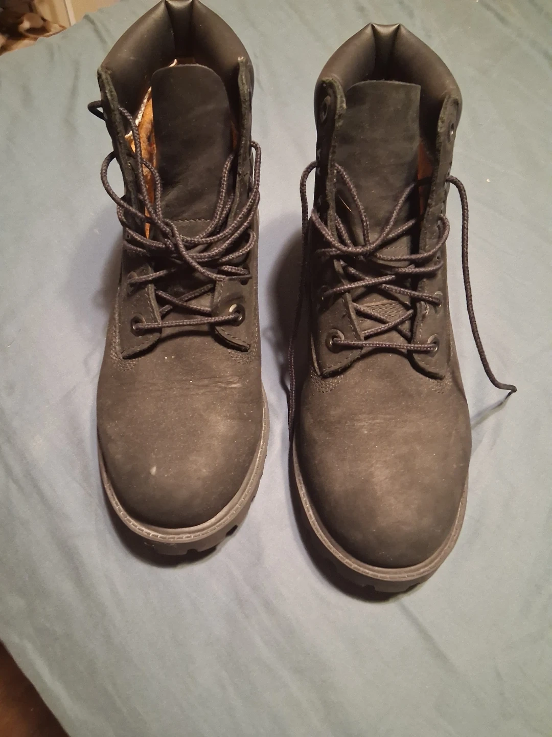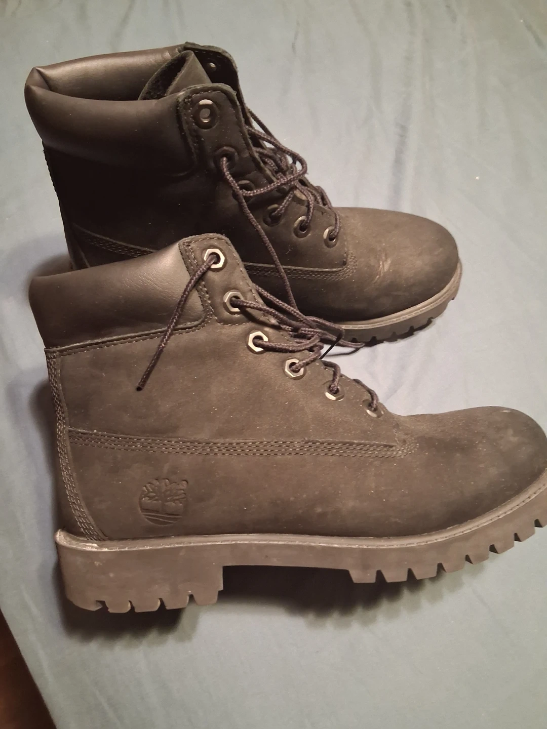 Selling a pair of Timberland boots in black. These boots are in good condition and ready for a new owner. They are perfect for everyday wear or outdoor adventures!
