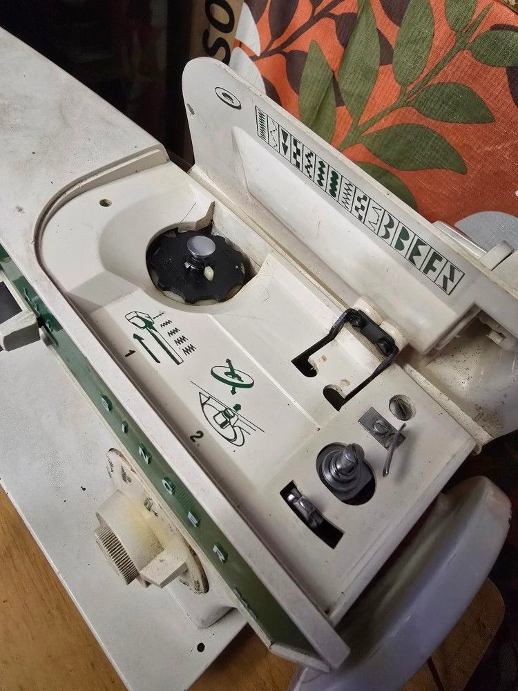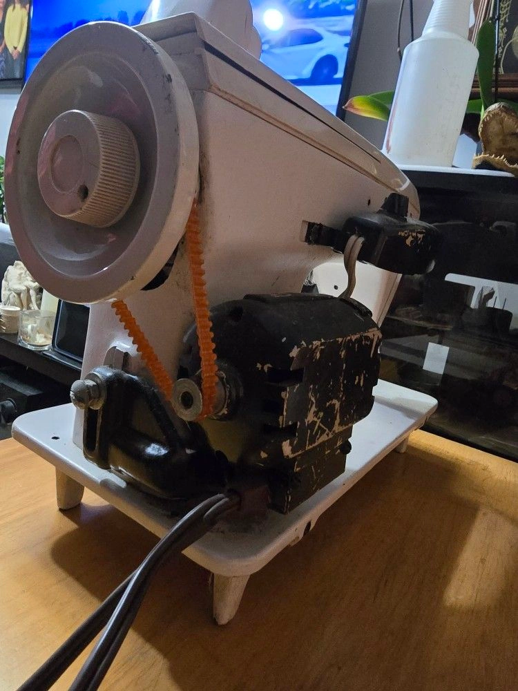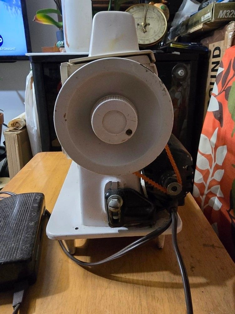 Note: Selling as-is or for parts, no returns accepted. Machine runs when foot pedal is pressed but zigzag slide adjustment got stuck, reason for selling for parts.
