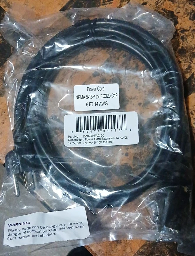 Selling a power cord, NEMA 5-15P to IEC320 C19, 6 FT 14 AWG. It's a power cord extension 14 AWG, 125V, 6 ft (NEMA 5-15P to C19).