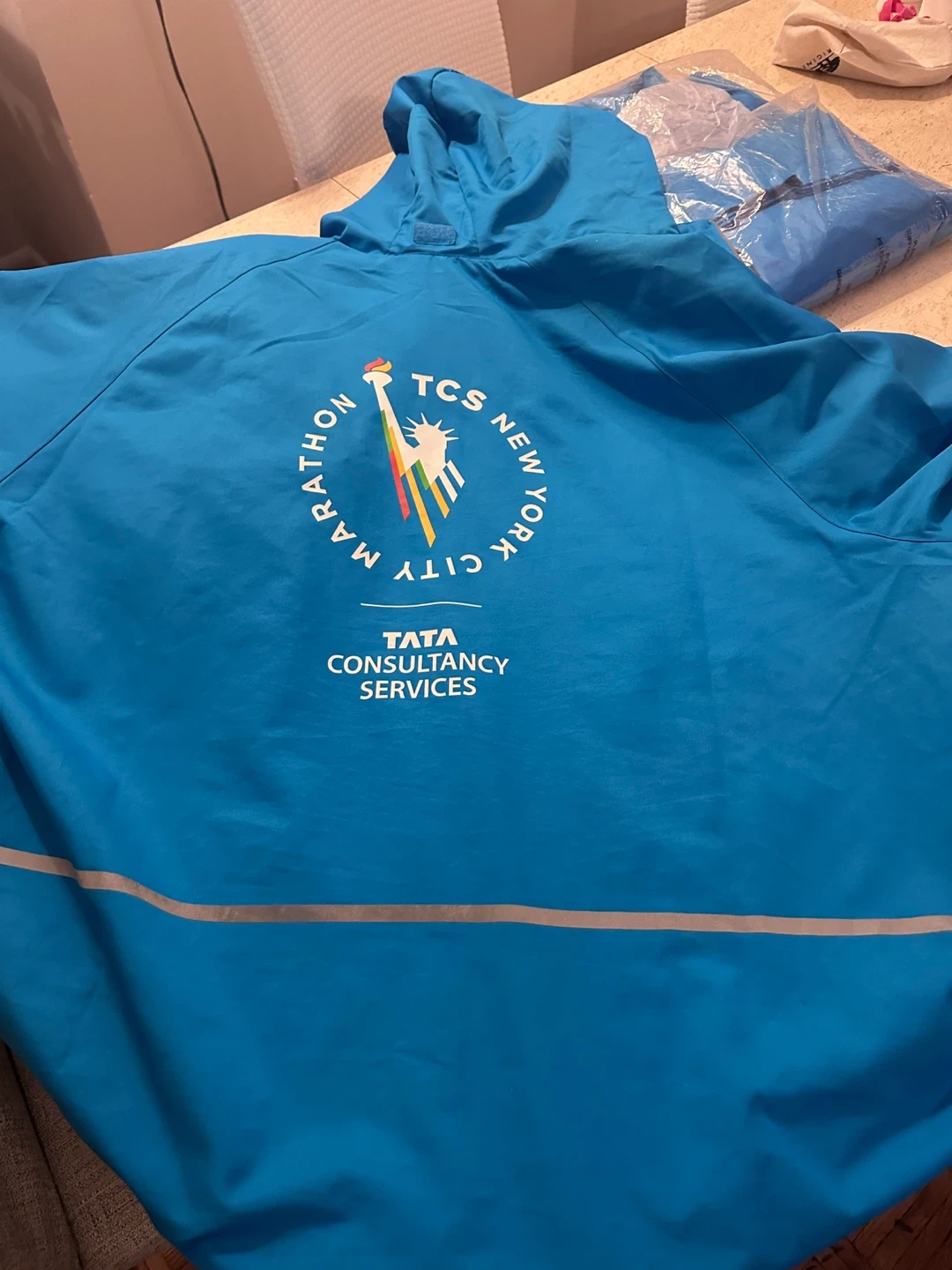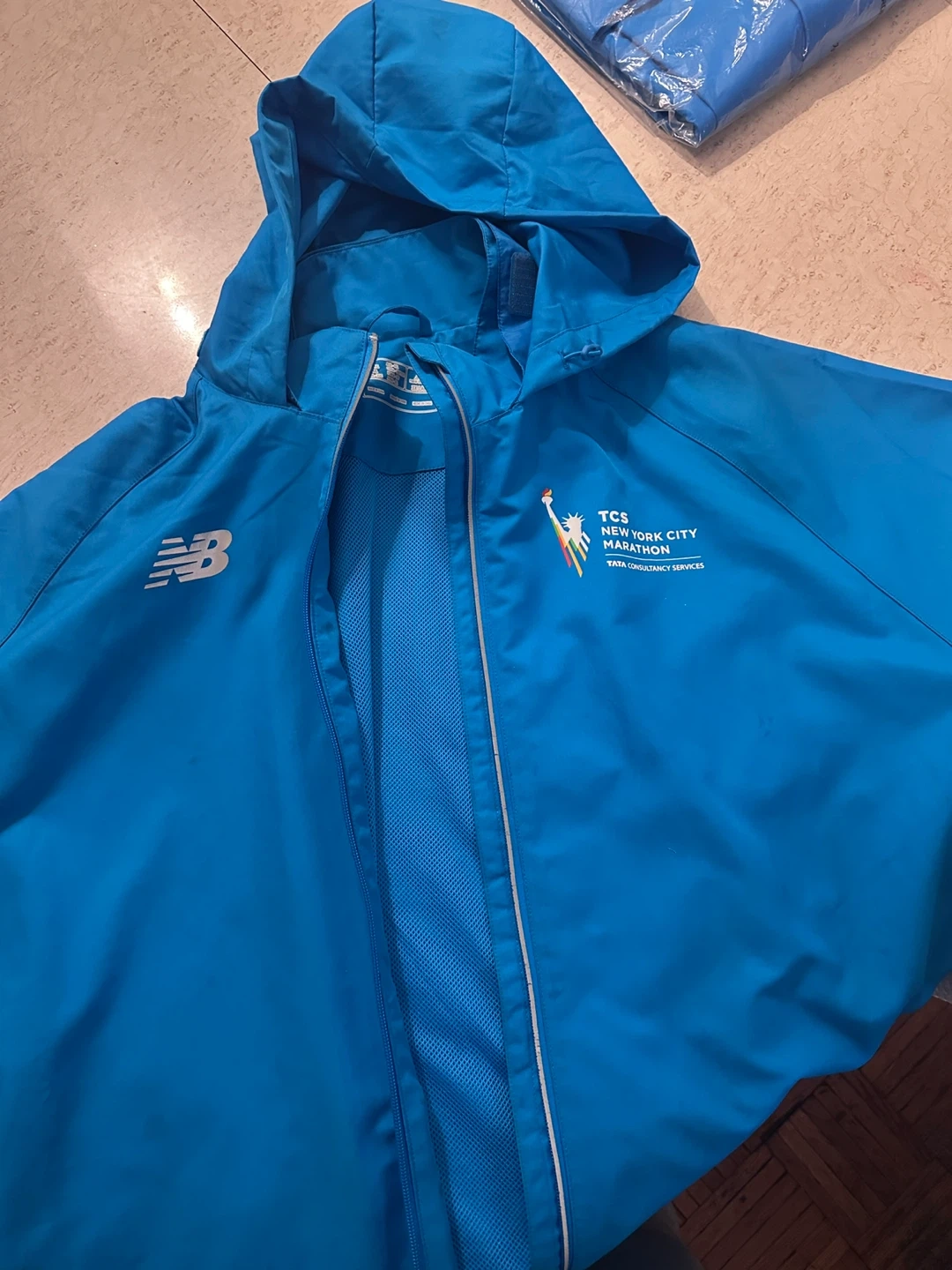 I'm selling a New Balance TCS New York City Marathon jacket in size XL. Still in its original packaging. Another size is modeled; it’s. Great light jacket for layering or light rain. It's the NYCM STF EVT JKT model.
