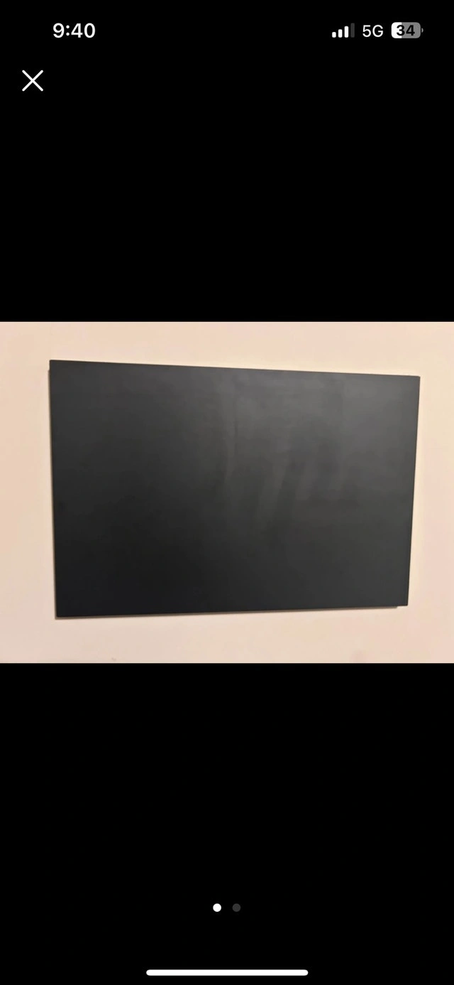 Black memo board. Great for organizing photos and notes. Wall mounted. 40x60 cm. Write with chalk and use magnets on board.