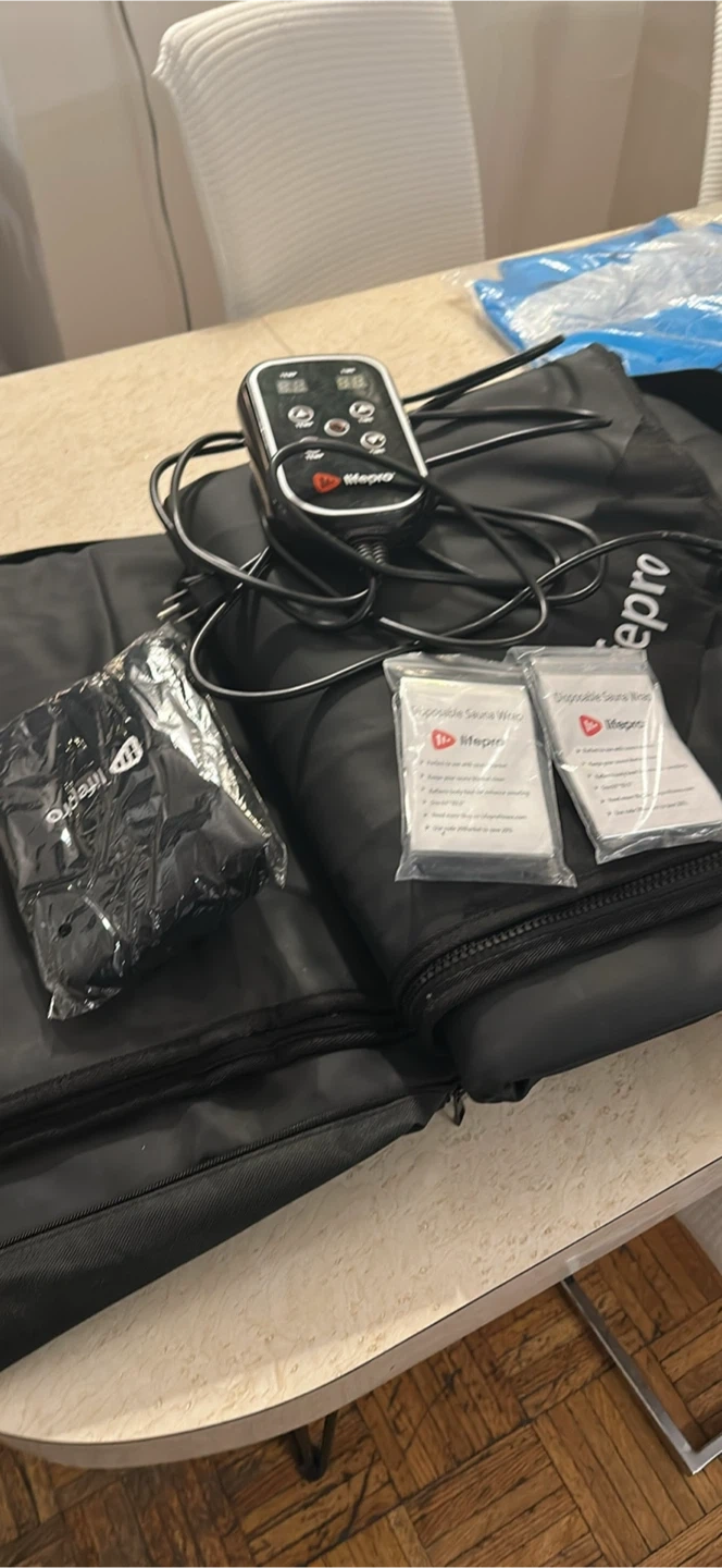 Get ready to relax with this LifePro Infrared Sauna Blanket! It comes with the control, blanket, disposable sauna wraps, and carrying bag. It's very easy to clean, and for getting that spa feeling at home, and used as weighted heated blanket on more than one occasion!