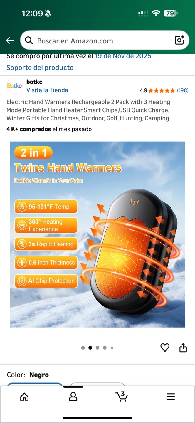 I'm selling a brand new set of botkc Rechargeable Hand Warmers! This is a 2-pack that comes with 3 heating modes. They're portable, have smart chips, and use USB quick charge. Perfect for winter gifts, outdoor activities, golf, hunting, and camping. It has 95-131°F Temperature, 360° Heating Experience, 3s Rapid Heating, 0.6 Inch Thickness, and Al Chip Protection. The box is included!