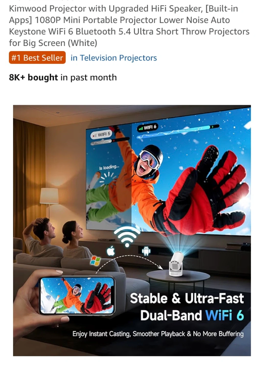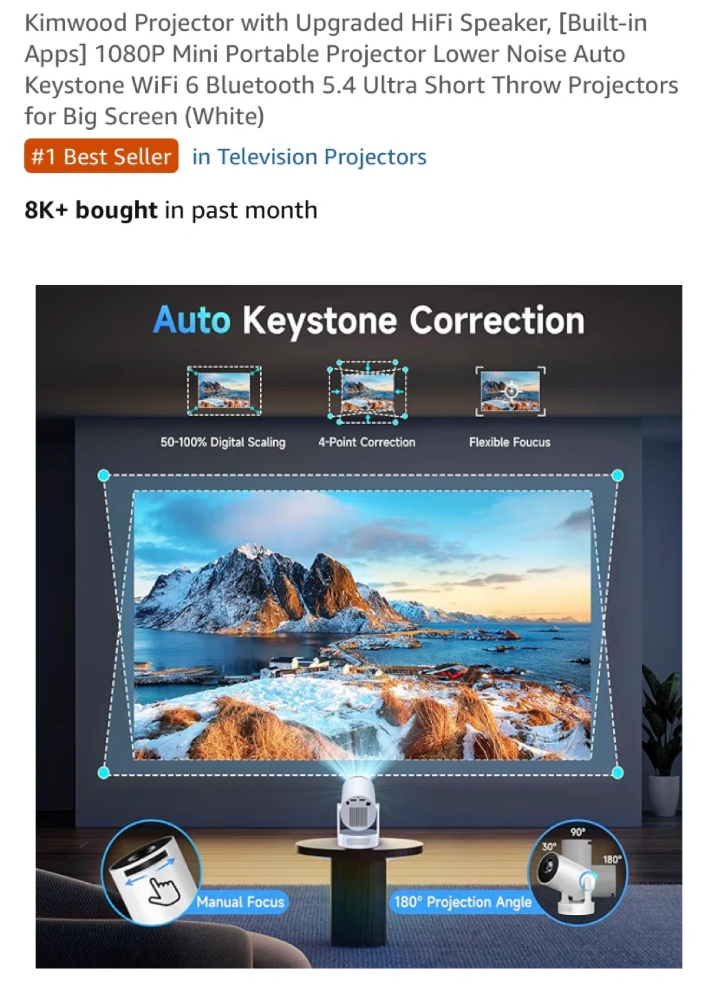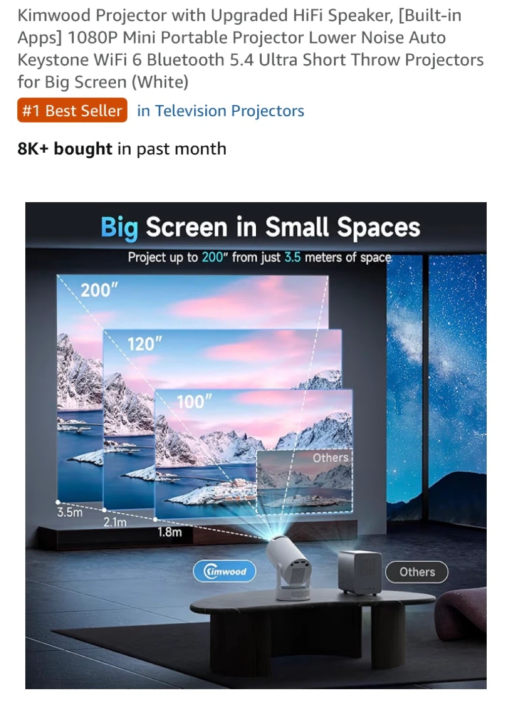 It has a built-in HiFi speaker and supports WiFi 6 and Bluetooth 5.4. It's also great for big screen viewing in smaller spaces, projecting up to 200" from just 3.5 meters away! Enjoy portable entertainment anywhere!