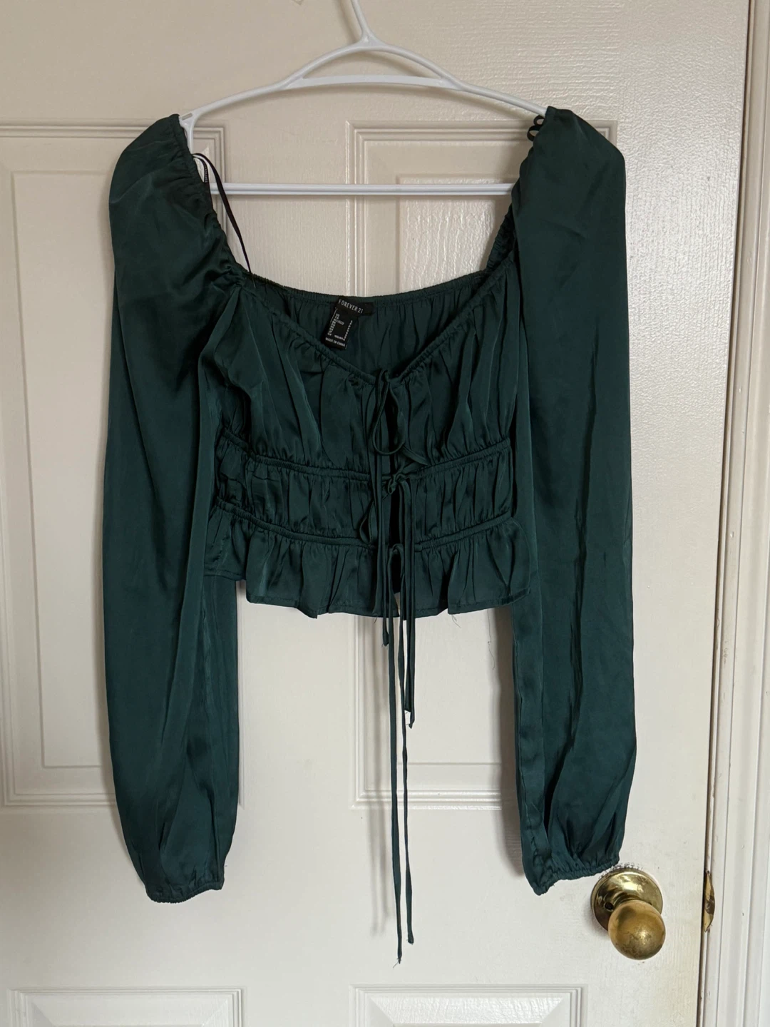 Selling a cute Forever 21 long-sleeve top in a beautiful green colour! It's a size small and in great condition. Perfect for dressing up or down!