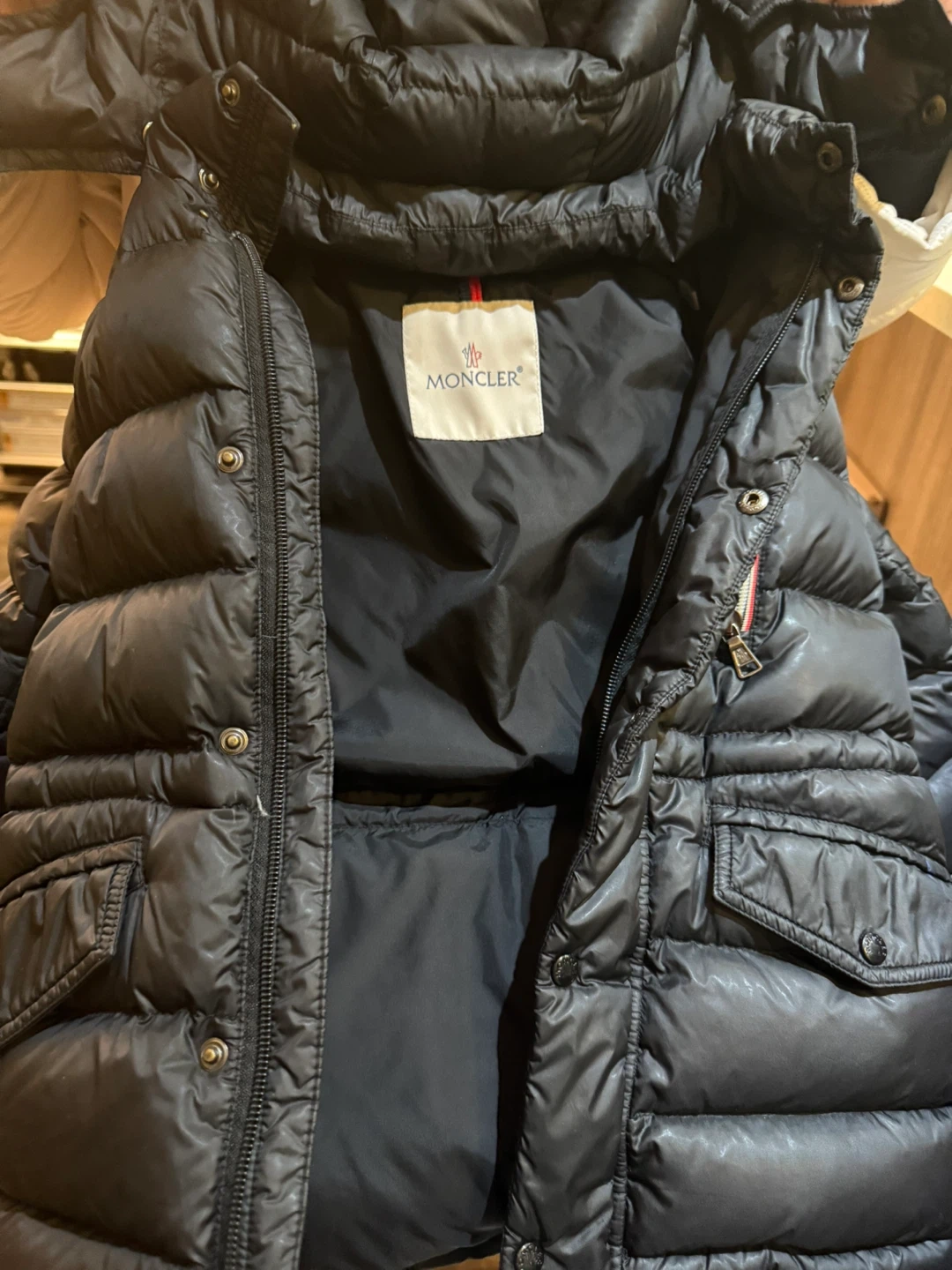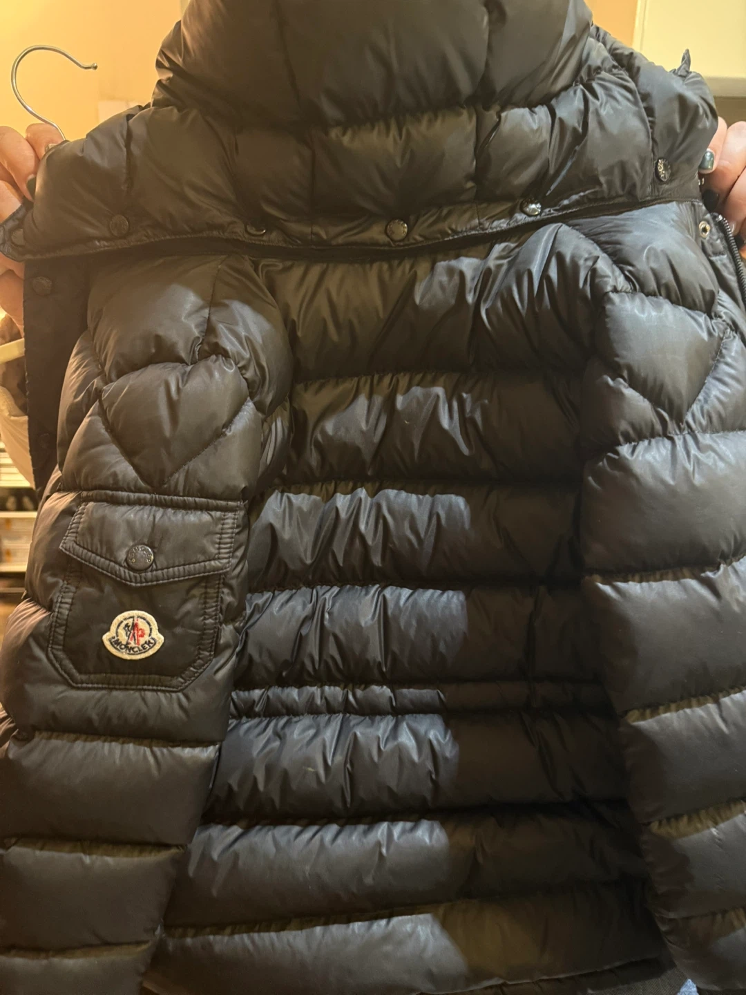 Selling a gently used Moncler puffer jacket in black. It's in great condition and ready to keep you warm this winter! The jacket features the classic Moncler logo and a stylish design.