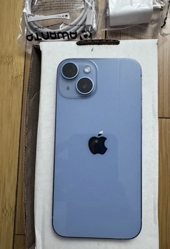 The Apple iPhone 14 256gb unlocked in Blue. Brand new 100% battery No scracthes. I have put a screen protector on (Tempered glass). I’ll put in the case as well.