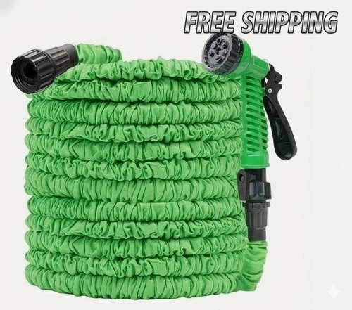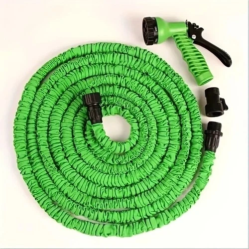 The Magic Expandable Garden Hose is a versatile and convenient solution for all your watering needs. This high-pressure flexible water hose is designed to be ultra flexible and retractable, making it easy to maneuver and store. With a length of 25 feet, this green hose is perfect for both indoor and outdoor use, whether you're washing your car or watering the garden. Made from durable plastic, this expanding hose is a practical and efficient addition to any home or garden. Tired of Heavy, Tangled Hoses? Revolutionize your watering and cleaning tasks with the Magic Expandable Garden Hose! This innovative hose starts out compact and expands to 3x its length under water pressure, then automatically shrinks back for easy storage. It’s lightweight, kink-free, and delivers high pressure for all your needs. The durable latex core and sturdy fabric cover are designed to withstand high water pressure, providing a powerful stream perfect for car washing, garden watering, patio cleaning, and pet bathing. The flexible design allows the hose to lay flat and move easily around obstacles, making gardening irrigation a breeze. This is the perfect tool for garden watering, car wash days, yard irrigation, window cleaning, and general outdoor cleaning. Made with a strong outer fabric shell and solid brass fittings, this hose is built to last. Its feather-light weight makes it easy for anyone to use, especially compared to traditional rubber hoses. Material: Latex Core, Polyester Fabric Cover, Brass Fittings. Feature: Expands with Water Pressure, Kink-Free, Lightweight. Use: Garden Watering, Car Washing, Patio & Yard Cleaning, Pet Wash