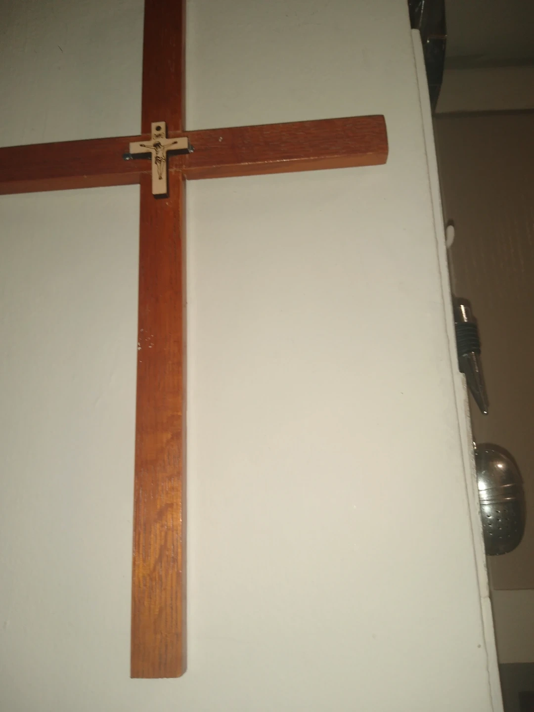 This is a beautiful One of a kind handmade wooden cross it's just beautiful and lights up the joy in any room or any holiday gathering it would be a great Christmas gift for anyone on your list.