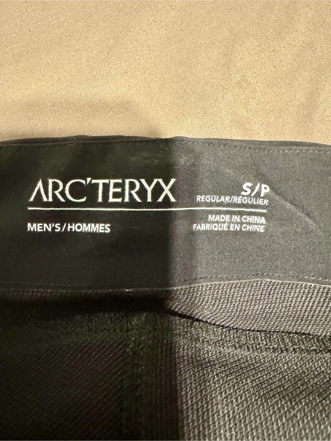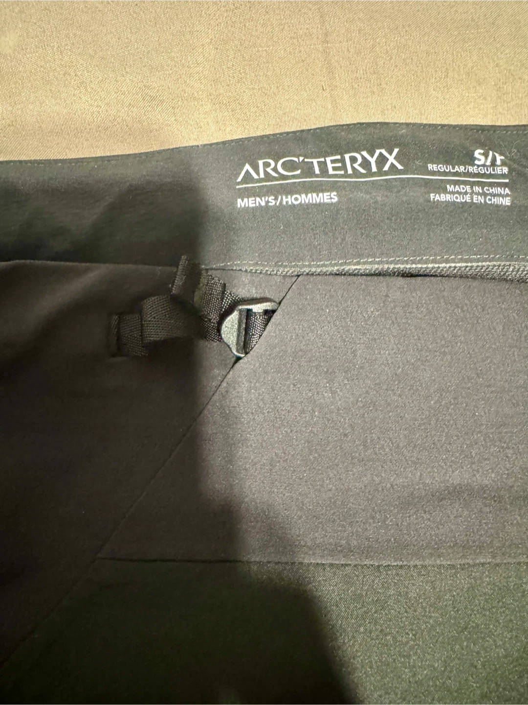Selling a pair of Black Arc'teryx men's shell pants in size small. Waist can fit to 30 i think and also adjustable as shown in photos. Zipper and draw string