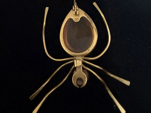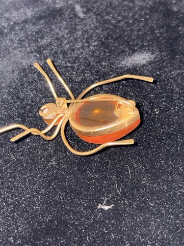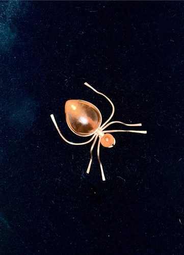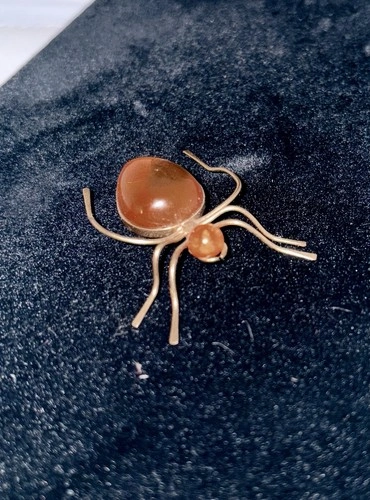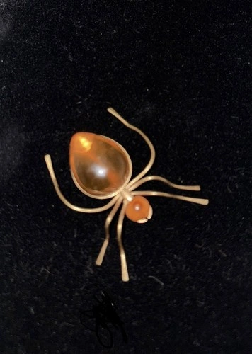 VINTAGE GOLD TONE GENUINE BALTIC AMBER SPIDER PIN