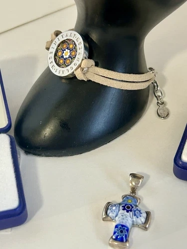 6 PCE LOT: 4 Murrine Veneziane Pendants, Murano Bracelet, 925 Mi
