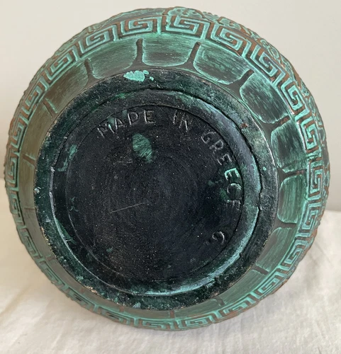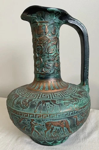 Beautiful vintage dark Green/Bronze figural design ceramic pitcher/vase. Made in Greece. Great condition. No chips, no cracks.