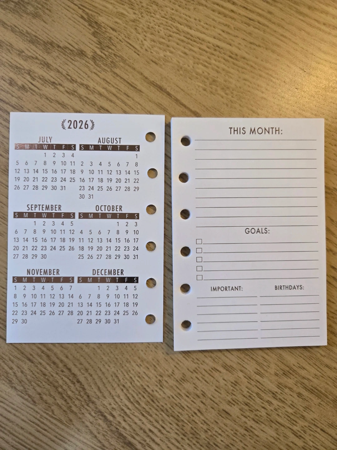 Selling a set of 2026 pocket-sized planner inserts from City Girl Planners! It's 3.2" x 4.7" (81mm x 120mm) and includes month on two pages, personal information, year at a glance, monthly view, deluxe version, this month overviews, and notes