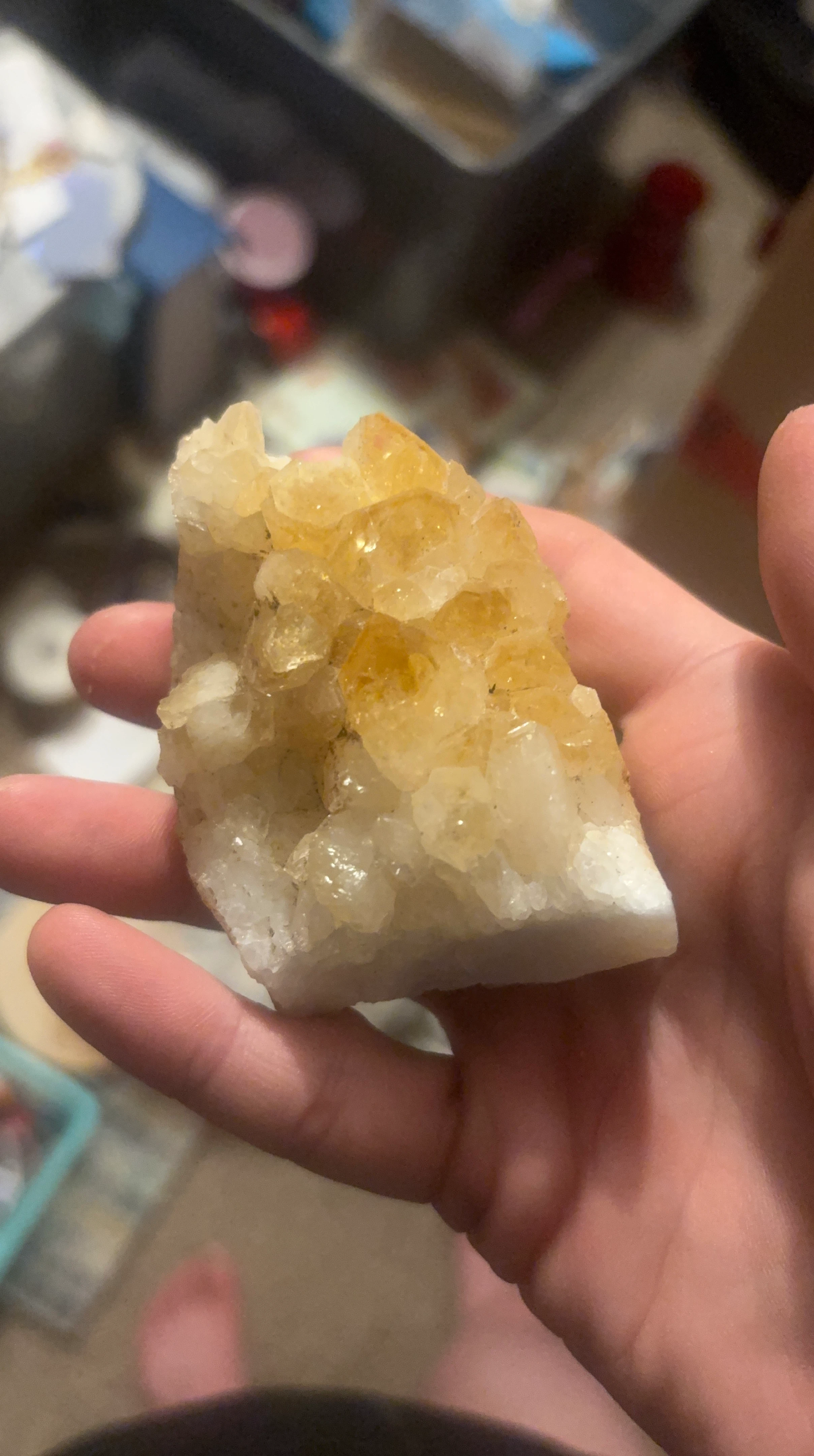 Selling a beautiful citrine quartz crystal. It has a lovely yellow and white colour. It's a great piece for any crystal collection!