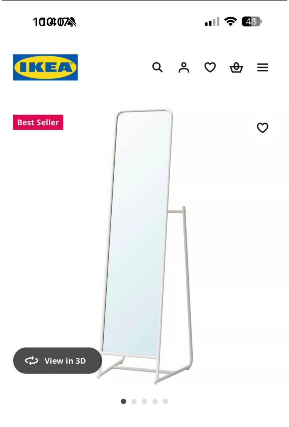 Selling an IKEA floor mirror in white. It's in great condition and would look lovely in any room! This mirror is a bestseller and will add a touch of elegance to your space. It's perfect for checking your outfit or just adding light to a room