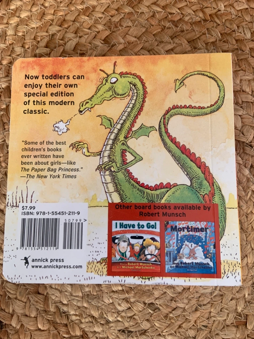 Selling a copy of The Paper Bag Princess by Robert Munsch! It's a great book for toddlers and young children. The illustrations are fun and engaging, and the story is a modern classic. A must-have for any kid's bookshelf