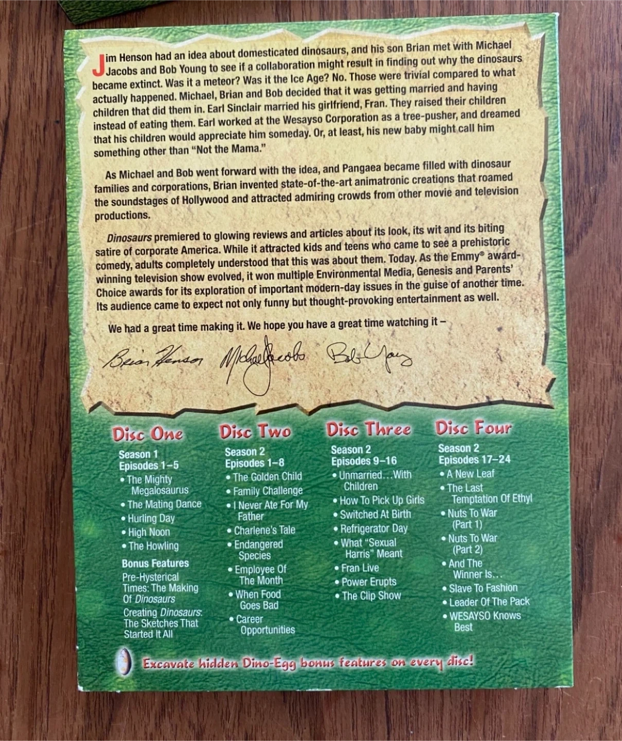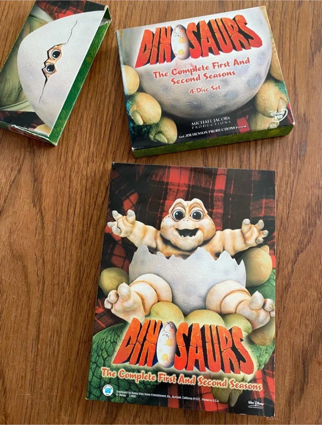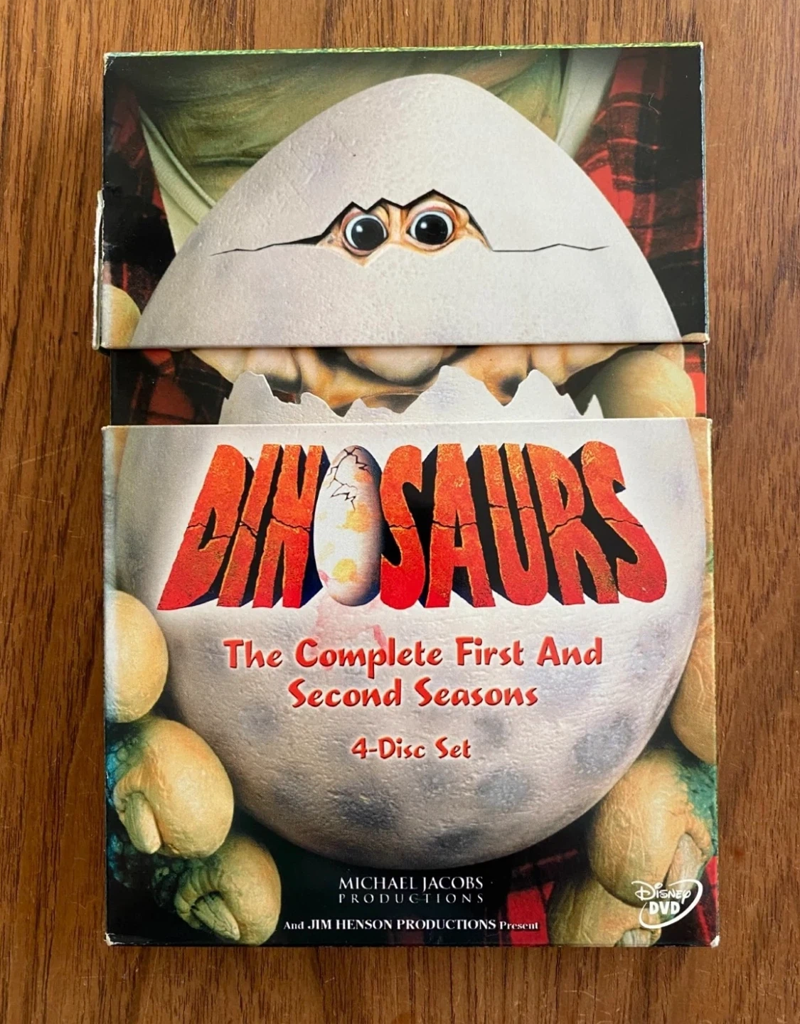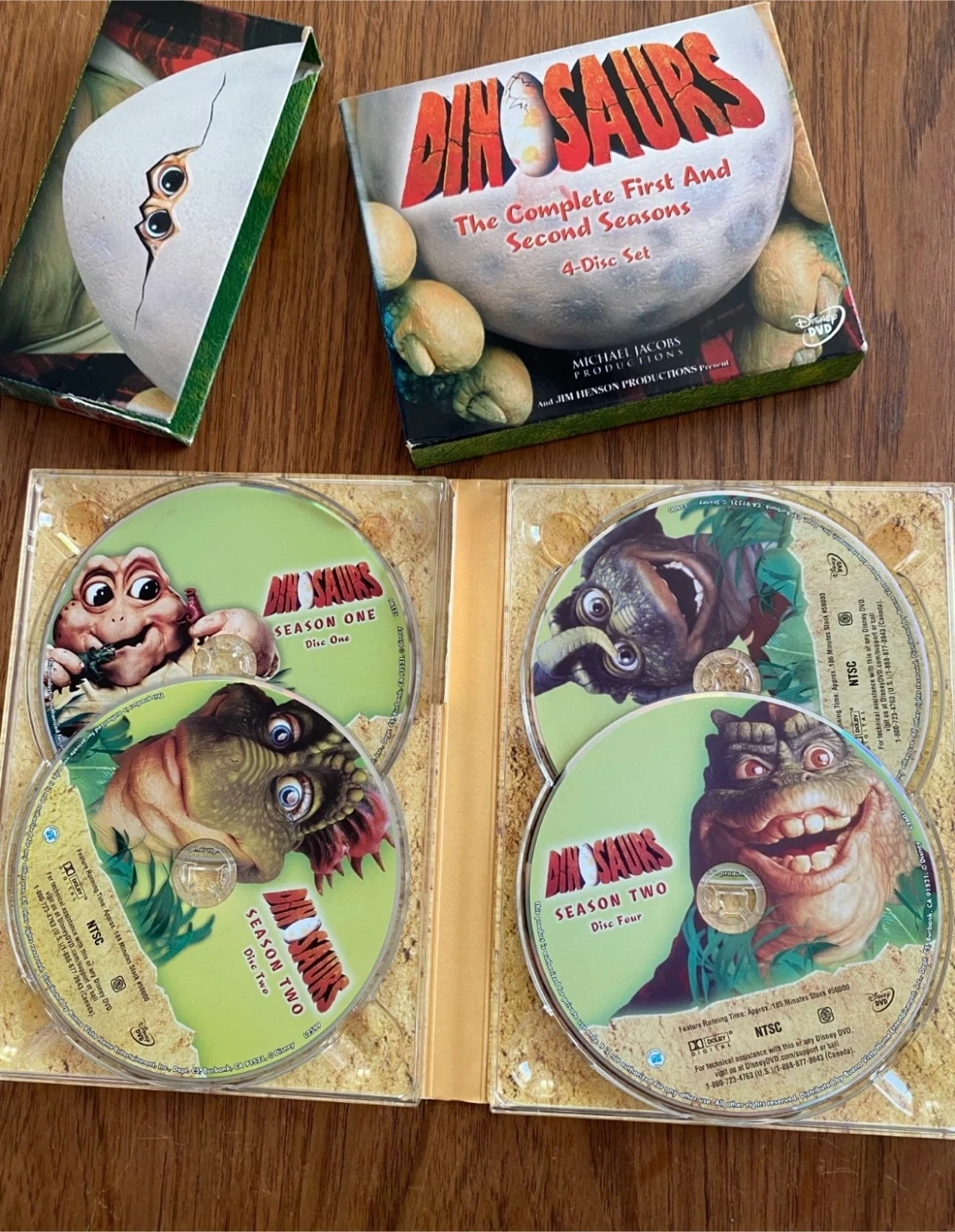 Selling the DVD set of Dinosaurs: The Complete First and Second Seasons. It's a 4-disc set that includes all the episodes from the first two seasons. The box is included and in good condition! Like new.