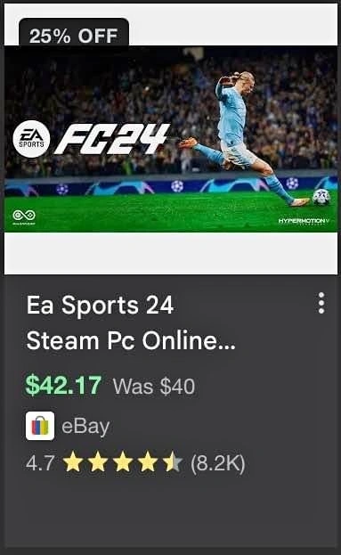Buy & SellEA FC 24 GameEA FC 24 Game$20Brand new, never used.WHERE TO MEETCheck LocationView MapSELLERverifiedDaniel MonroyFanshawe600 reviews0 chats·0 favorites·2 viewsSEND CHAT TO SELLERHi Daniel Monroy! I’m interested in your listing.Hi Daniel Monroy! I’m interested in your listing.Get the Karrot app to chatSign In to chat