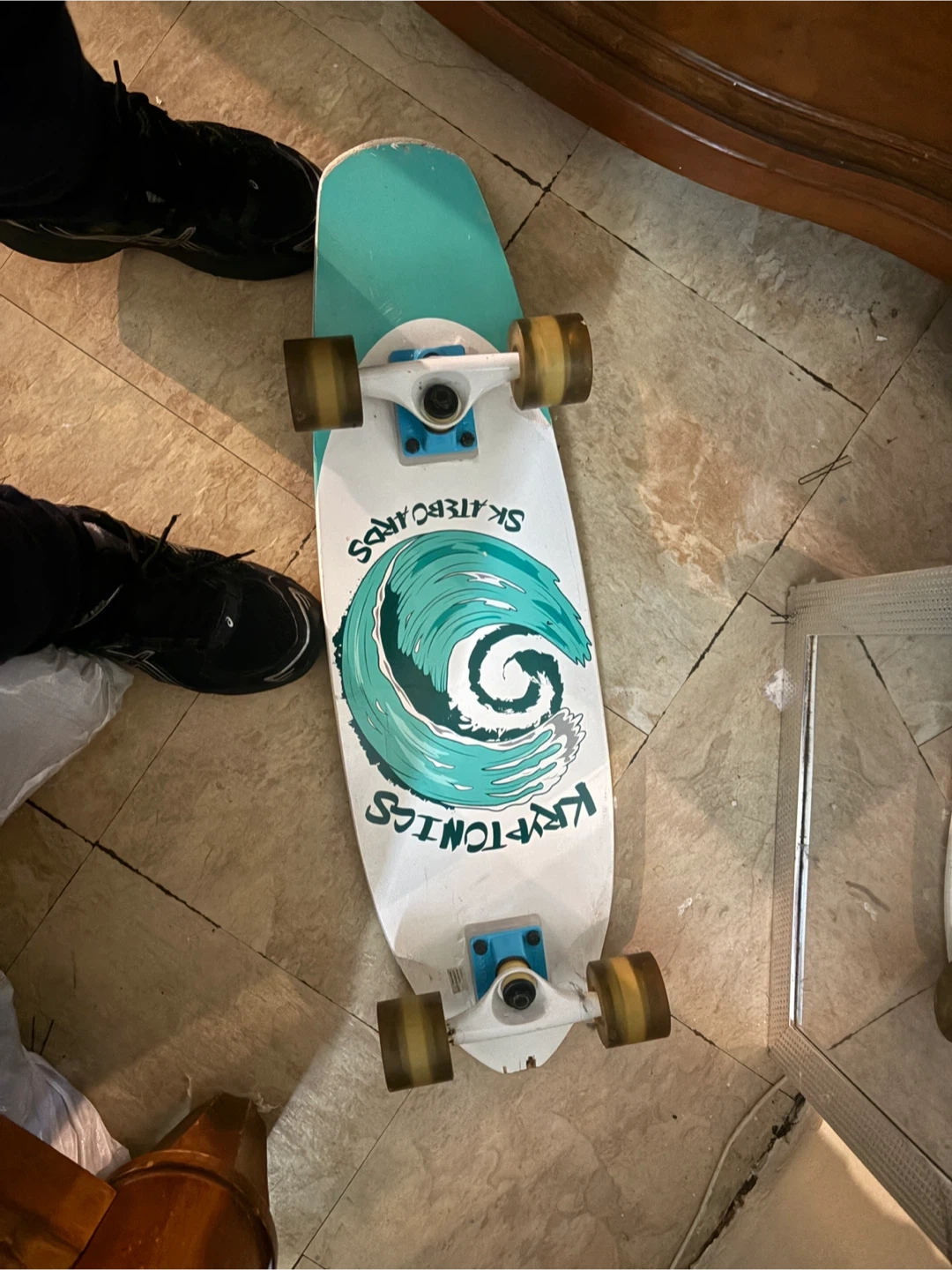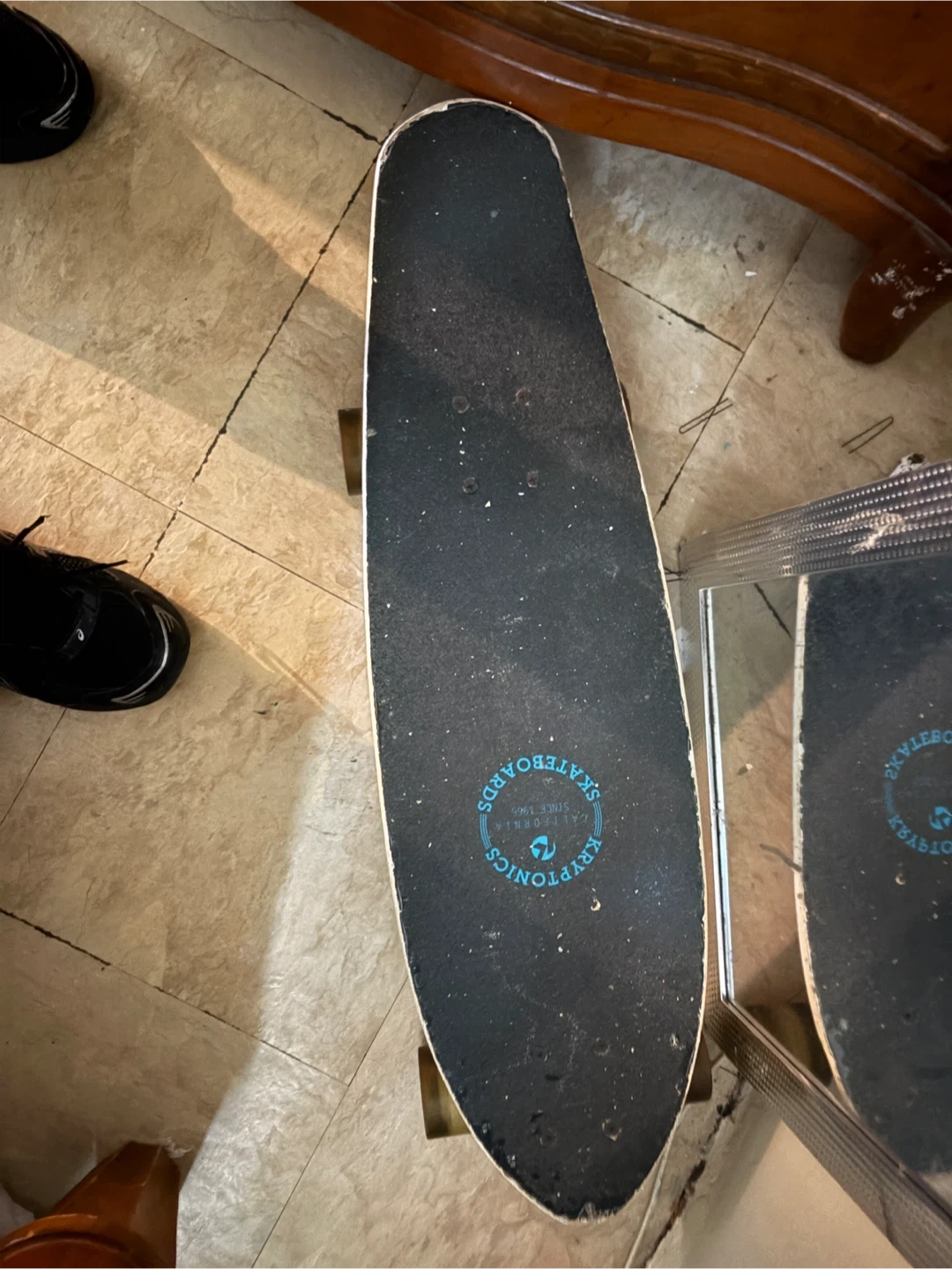 Selling a Kryptonics skateboard. It has a cool wave design on the bottom and the Kryptonics logo. The top has a black grip tape surface. Great for cruising around!
