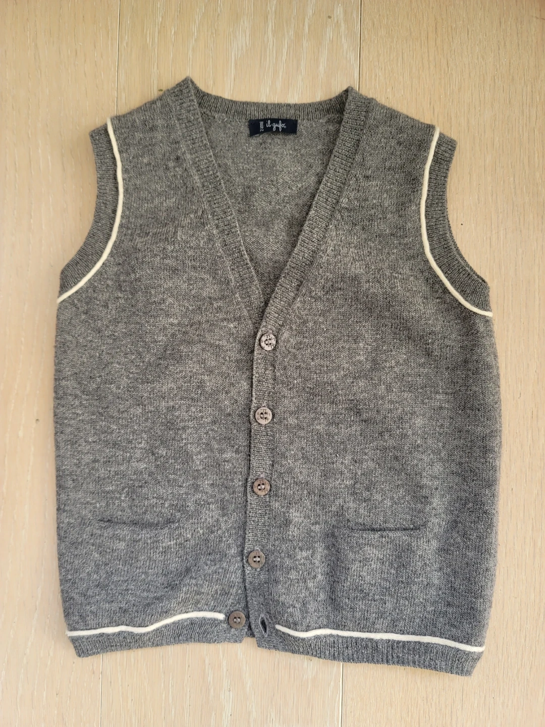 Il Gufo Gray Sleeveless Cardigan 2Y