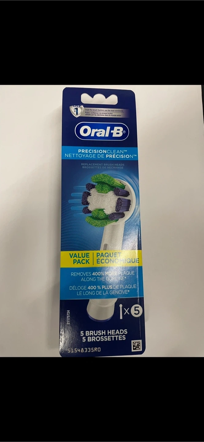 Selling a pack of Oral-B Precision Clean replacement brush heads. This is a value pack containing 5 brush heads to keep your teeth sparkling clean! They remove 400% more plaque along the gumline, so you can be sure you're getting a thorough clean every time!