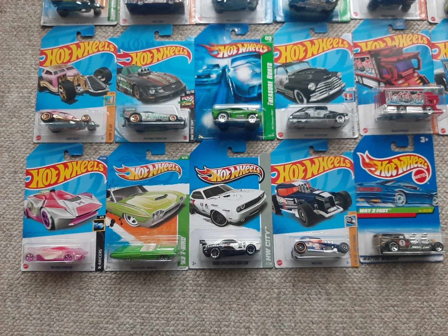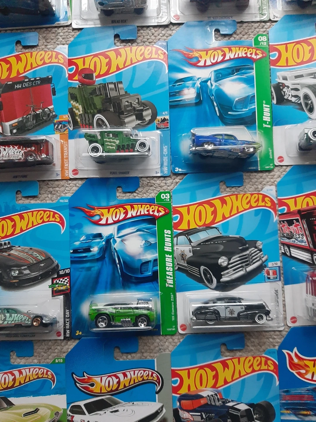 Selling a collection of Hot Wheels diecast cars, still in their original packaging! Great for collectors or kids who love playing with toy cars. Each car is new and unopened. Lots of different models available! Treasure Hunts $10 each