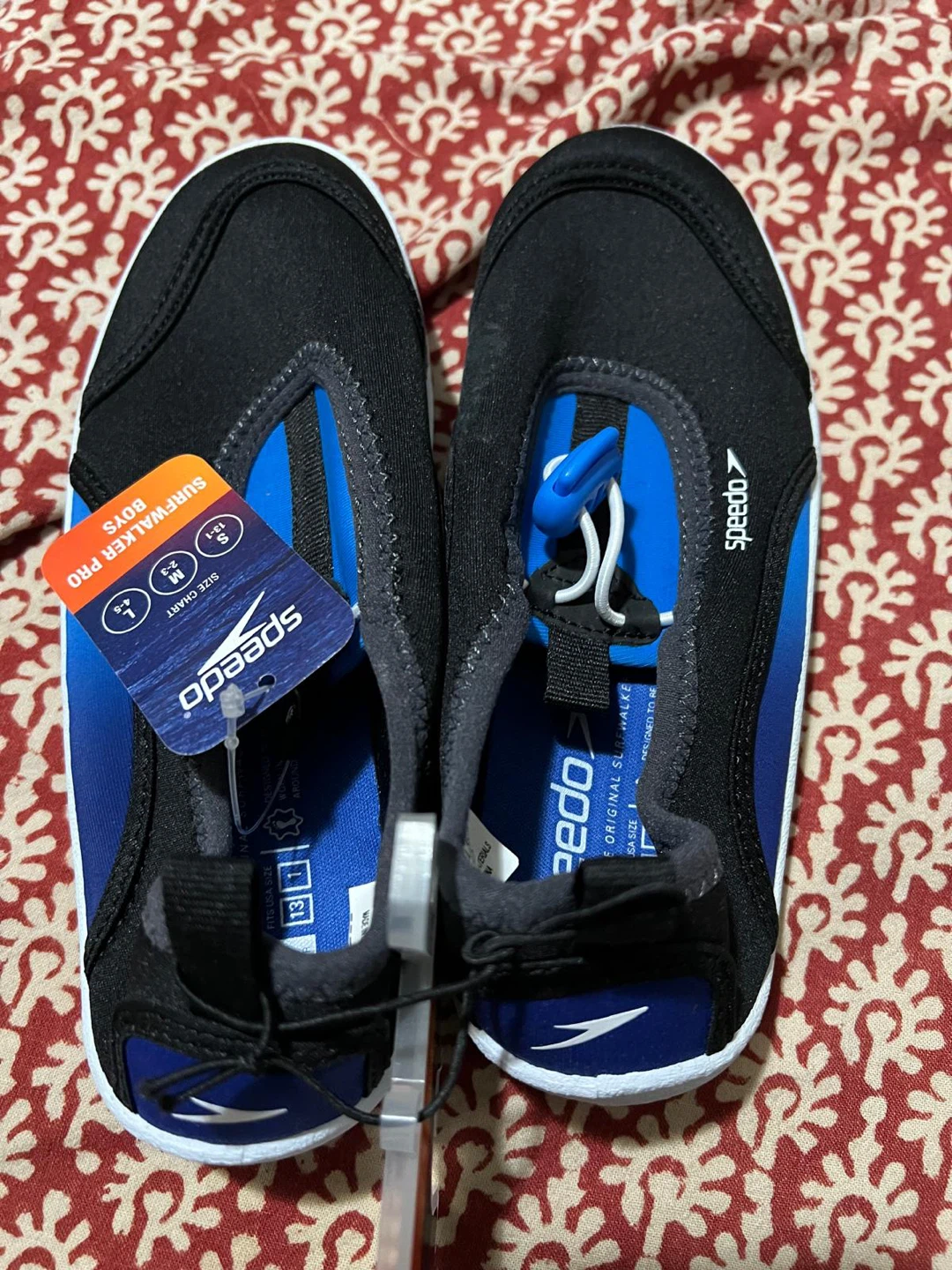 These Speedo Surfwalker Pro shoes are perfect for boys! They come in size S and feature a breathable mesh upper for cool ventilation and a quick adjust bungee system for a snug, custom fit. The color is Sodalite Blue