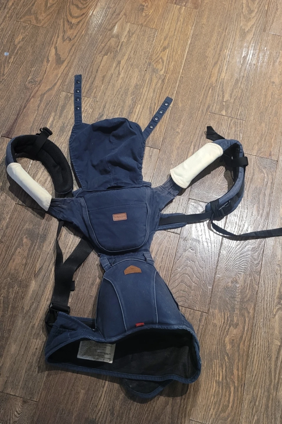 I'm selling a used I-angel baby carrier in blue. It's organic cotton so the color is fade but with cover, no problem π