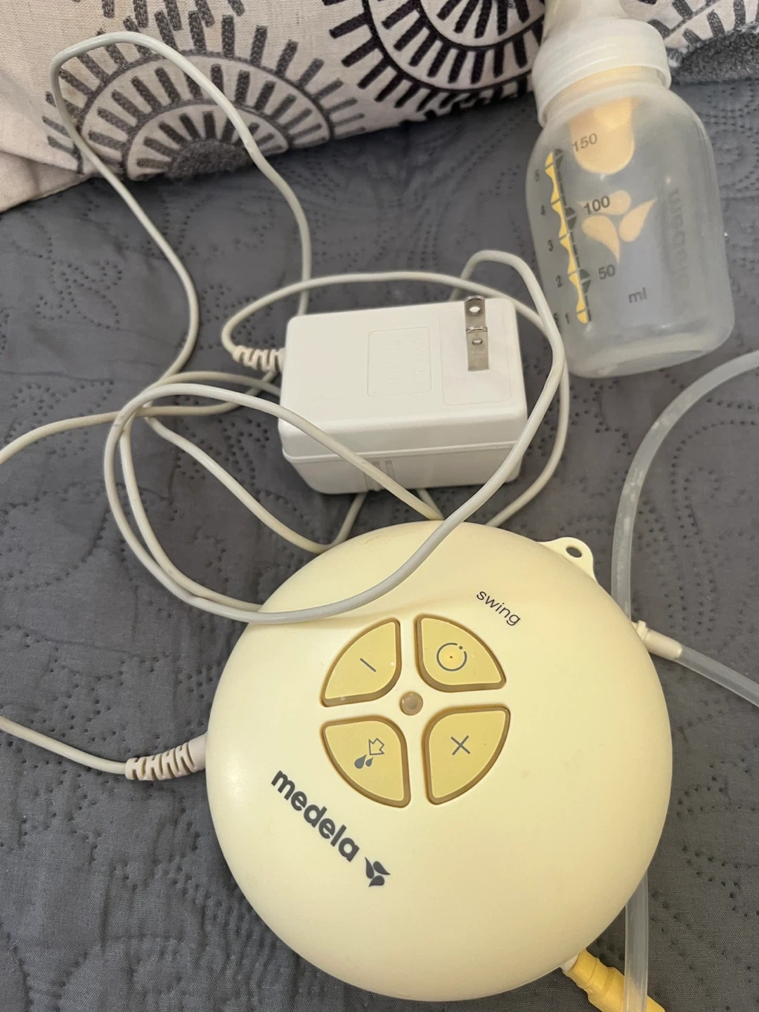 Selling a Medela Swing single electric breast pump. It's in great condition and comes with all the pictured components. This pump is designed for occasional use and is lightweight and portable. Perfect for busy moms!