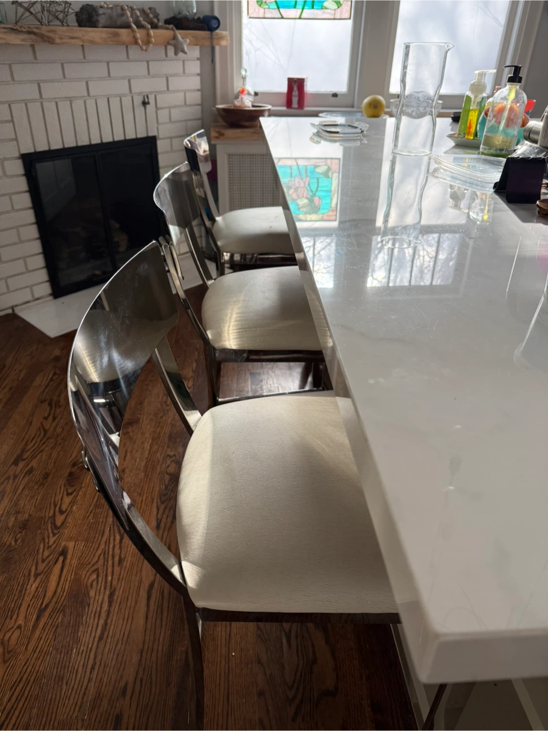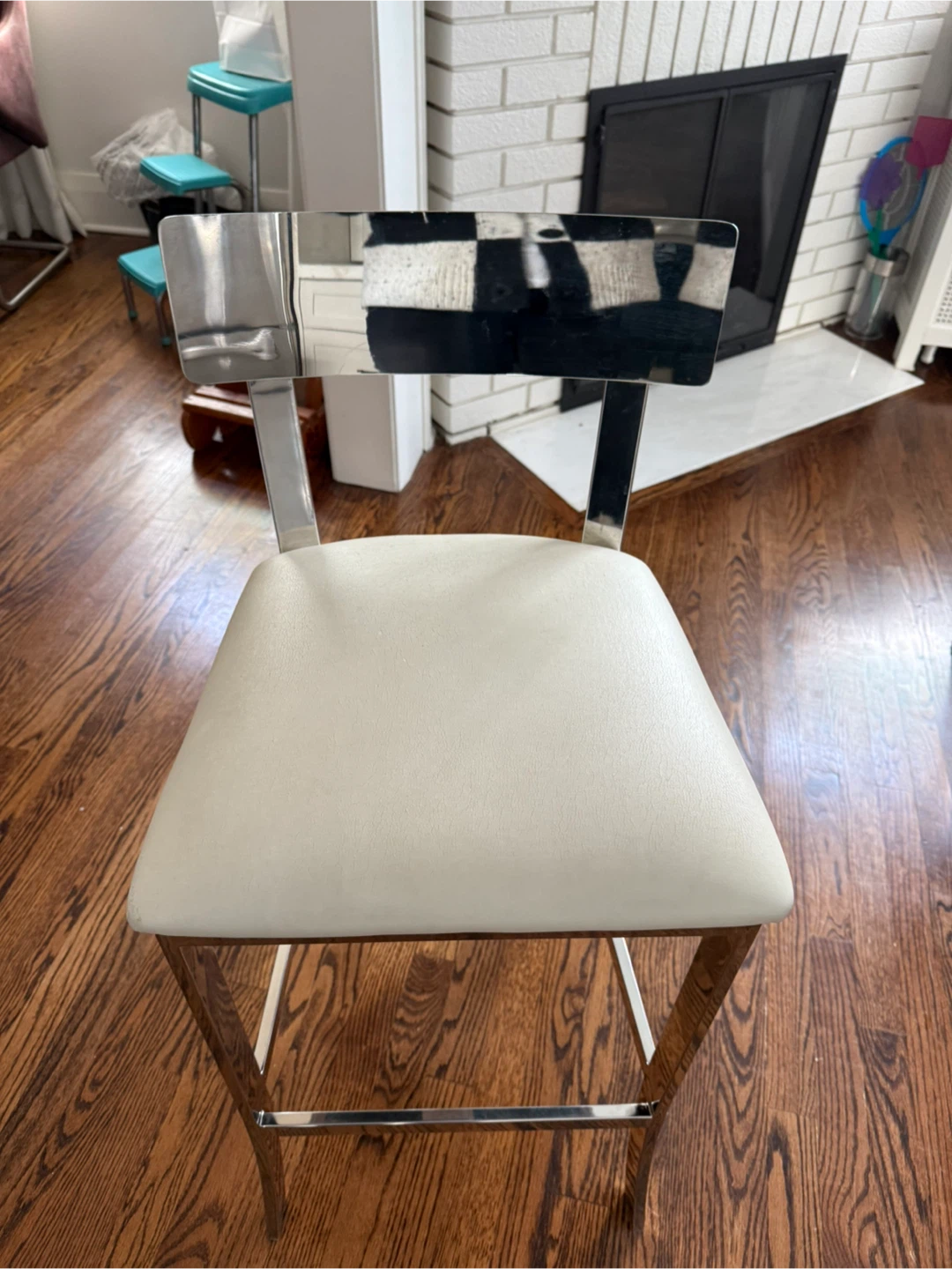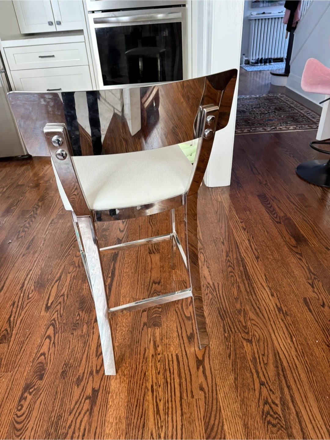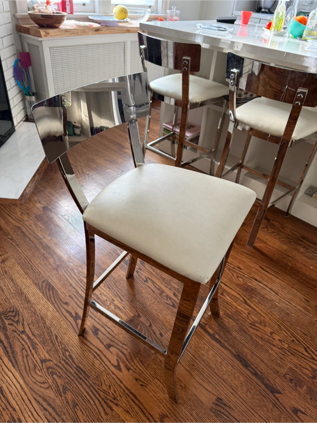 Selling a set of three bar stools with chrome frames and white seats. They're in great shape and would look fantastic in any kitchen or bar area! Seat height 25β Pick up near yonge and lawrence
