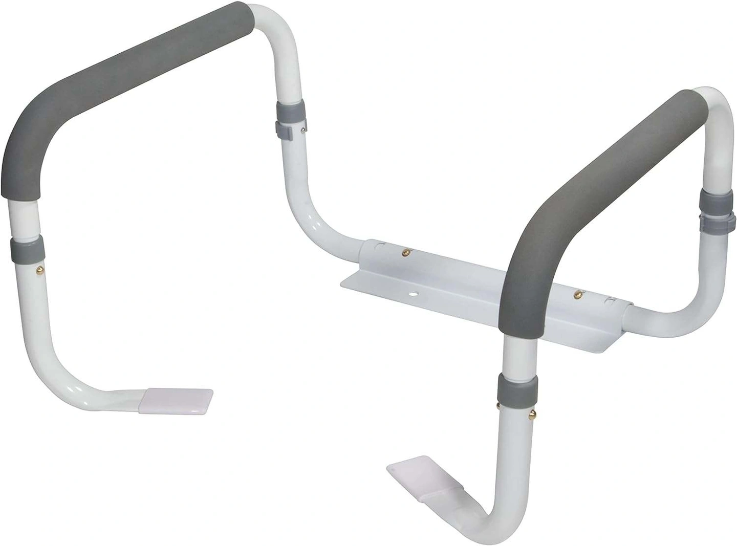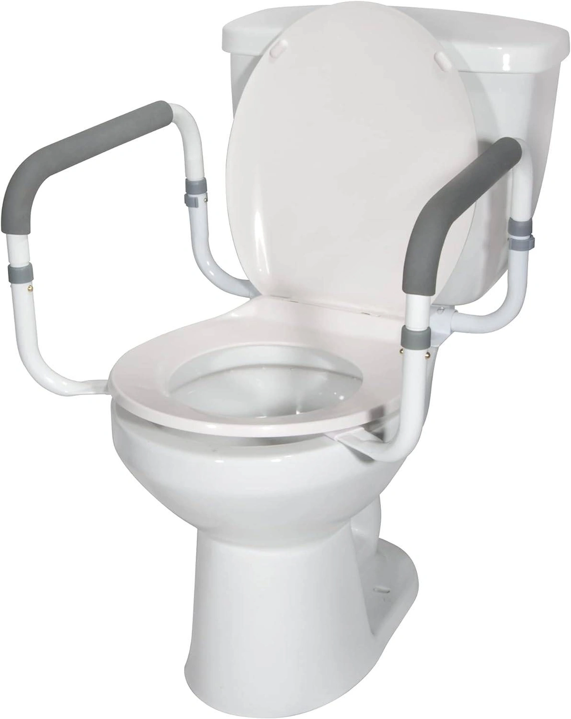 These toilet safety rails are a great addition to any bathroom! The width between the arms is adjustable from 16.5 to 19.5 inches. They provide added safety and support when using the toilet.