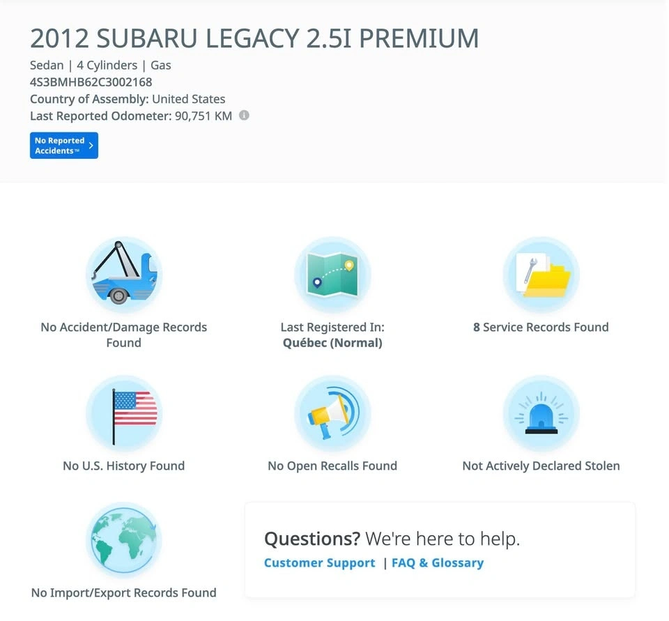 2012 Subaru Legacy Premium – No Accident – AWD Sedan – Low KM – Well Maintained