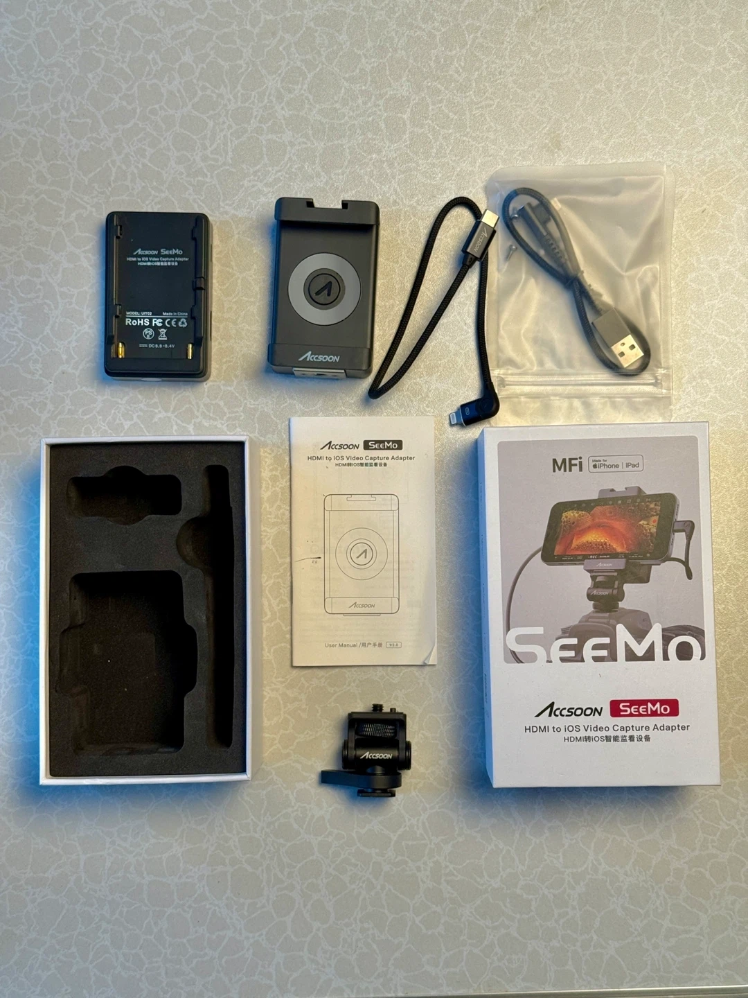 Selling an Accsoon SeeMo HDMI to iOS video capture adapter.