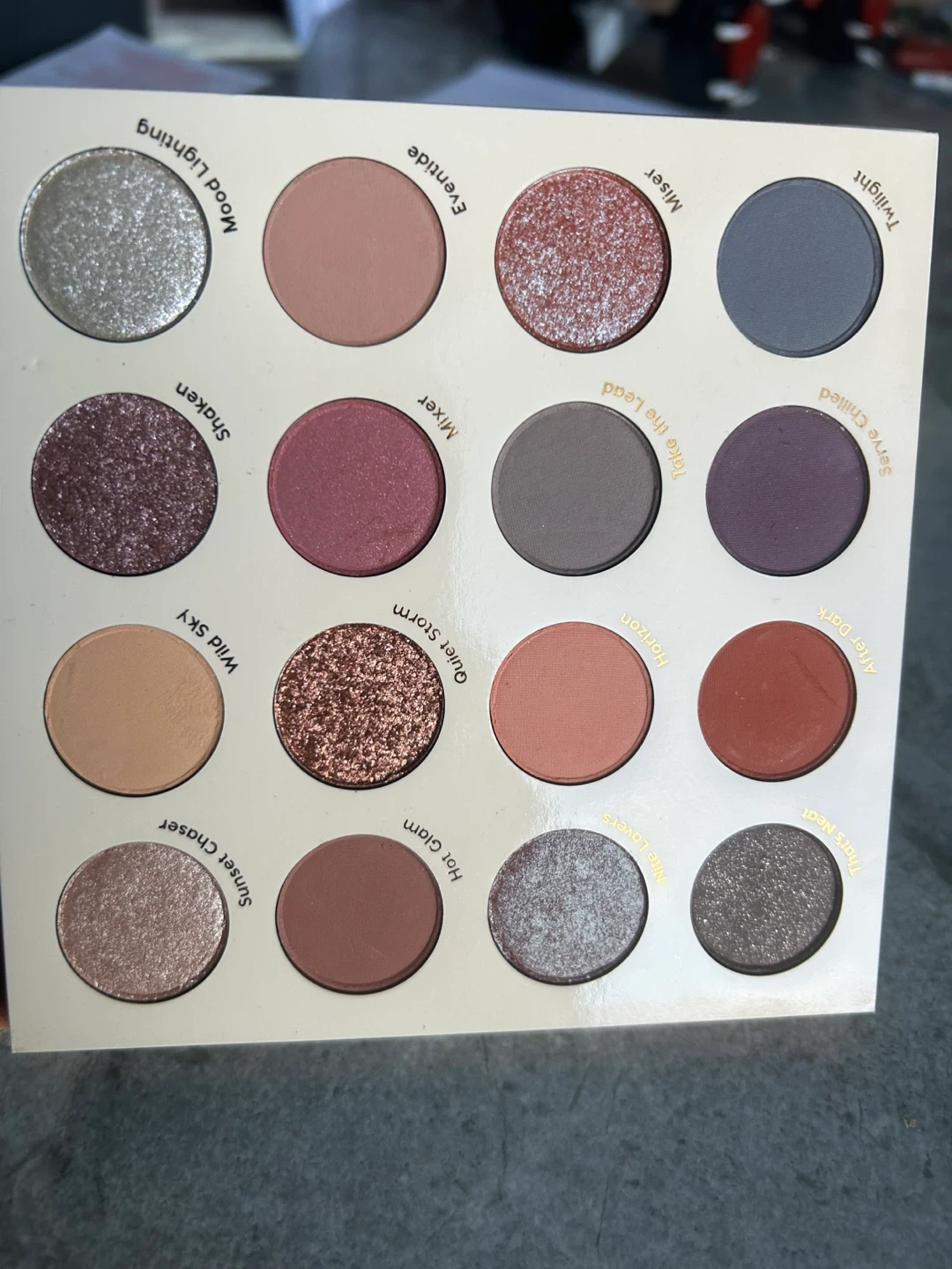 Selling a ColourPop Lust for Dusk eyeshadow palette! It features a beautiful range of colours, perfect for creating a variety of looks. The palette includes shades like Sunset Chaser, Wild Sky, Shaken, Mood Lighting, Hot Glam, Quiet Storm, Mixer, Eventide, Nite Lovers, Horizon, Take the Lead, Miser, That's Heat, After Dark, Serve Chilled and Twilight