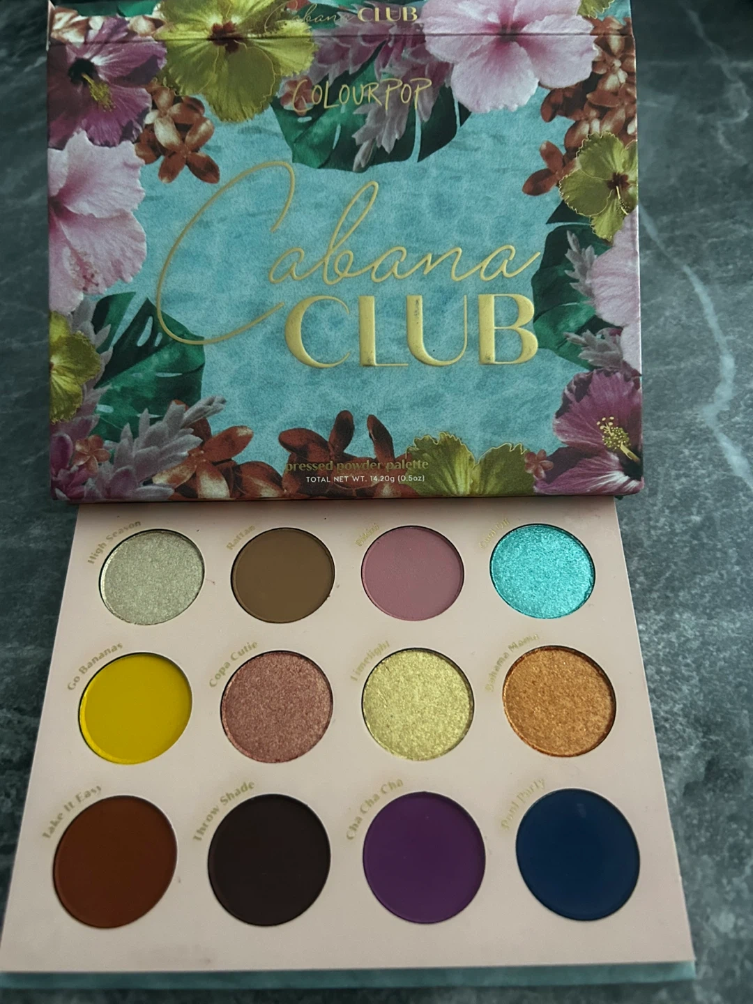 Selling a ColourPop Cabana Club pressed powder palette. It includes a variety of shades perfect for creating fun and vibrant looks. The palette is in great condition and ready for your next makeup adventure