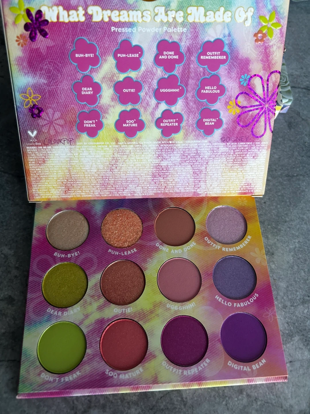 Selling a ColourPop eyeshadow palette from the Disney Lizzie McGuire collection! The palette is called "What Dreams Are Made Of" and features a variety of fun, vibrant colours. It's in great condition and ready for a new look!