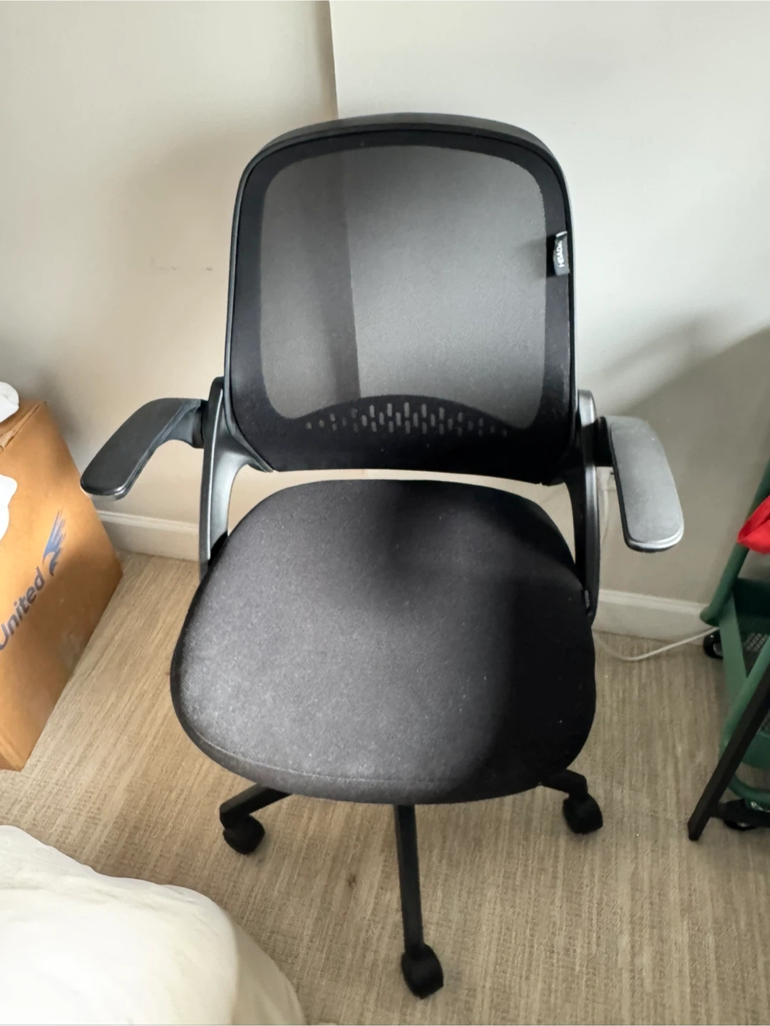 Selling a Steelcase Think office chair in black. It's in great condition and super comfortable for long work sessions. The chair features adjustable arms and a breathable mesh back. Perfect for your home office!