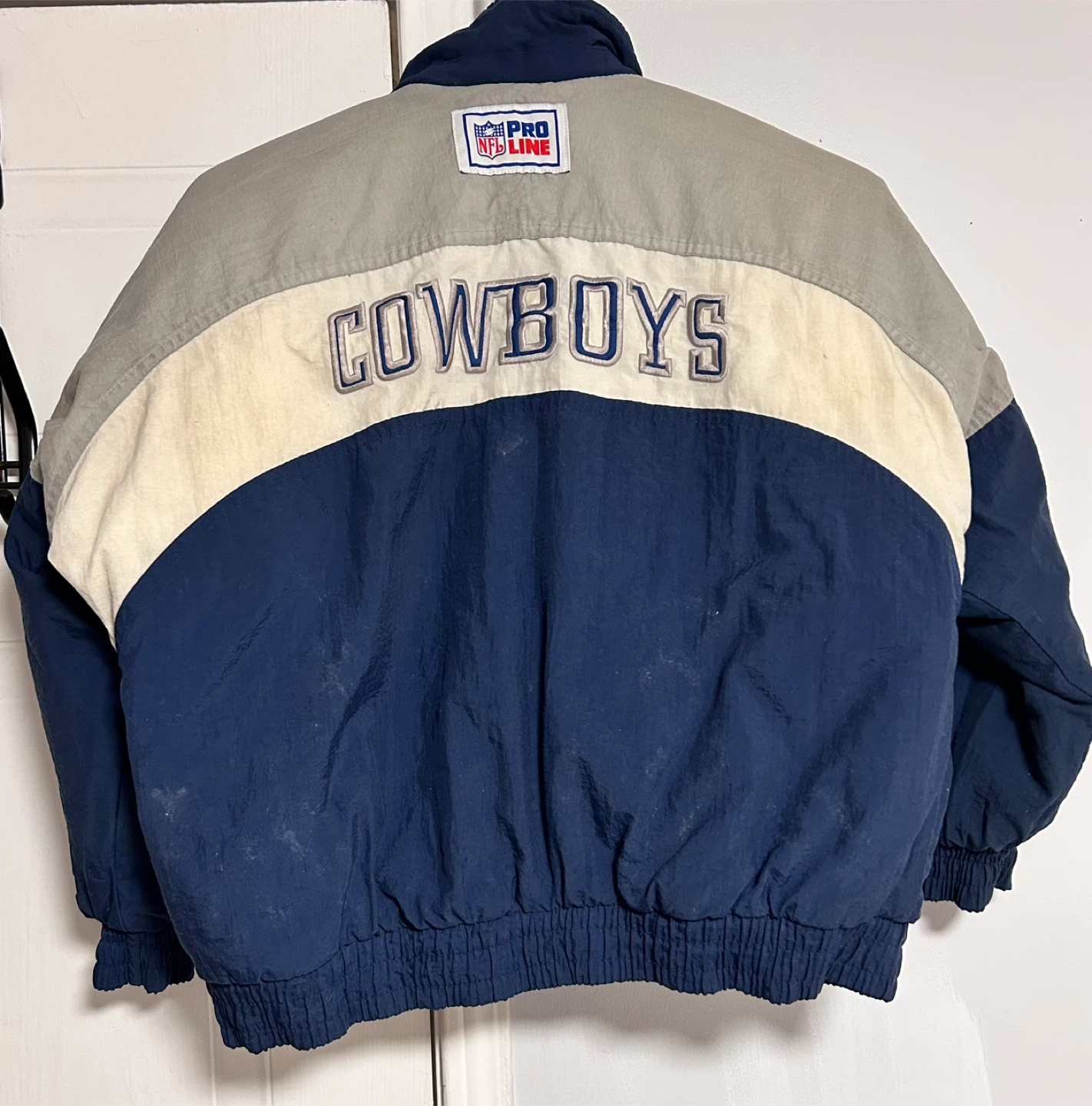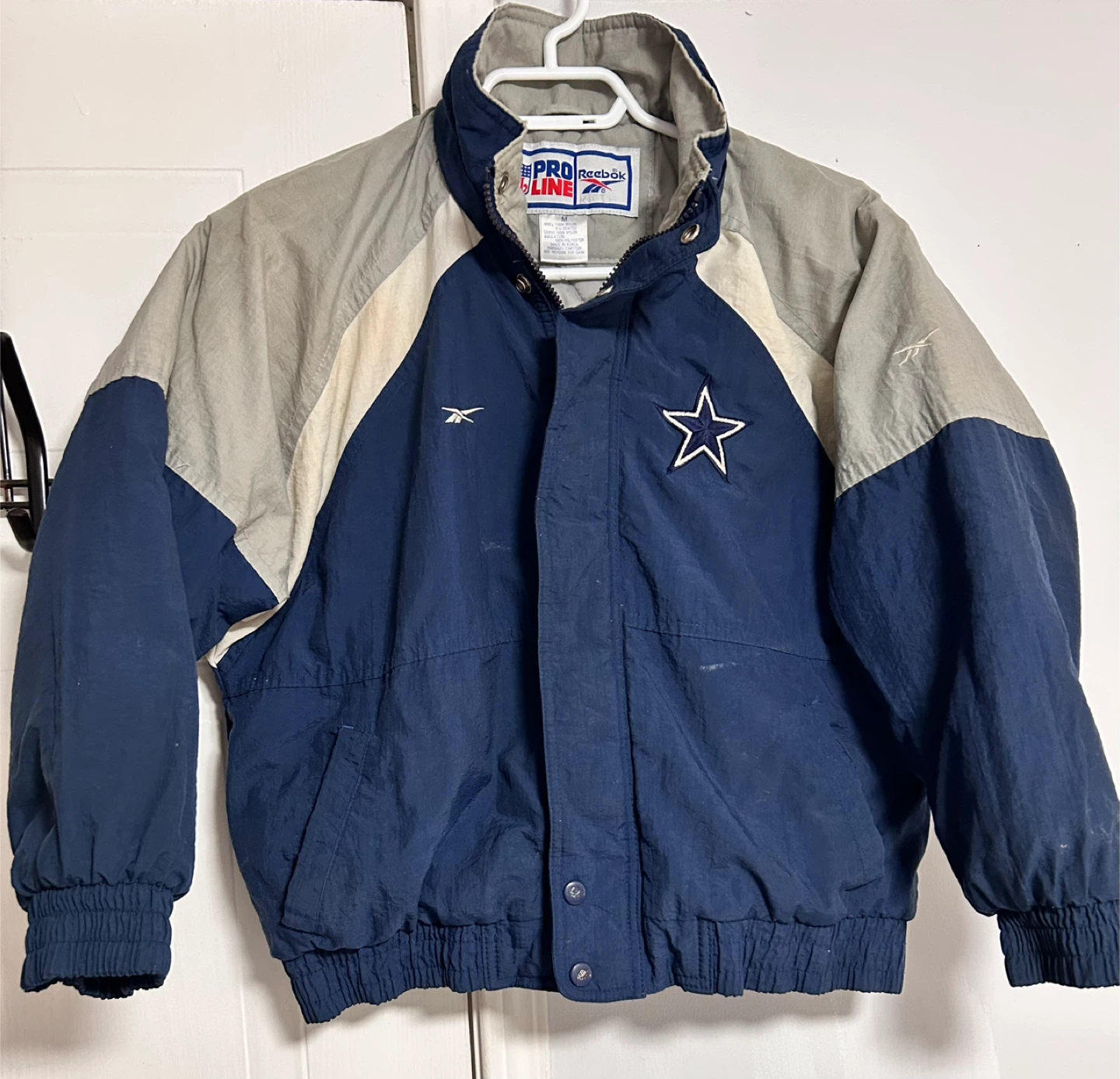 Selling a Reebok NFL Pro Line Dallas Cowboys jacket in size Youth Medium It is made of 100% nylon shell and lining with polyester insulation. It has a blue, grey, and white color block design with the Cowboys logo. No Hood This jacket is perfect for any Cowboys fan!🦾 $55 ( Negotiable ) 🧧 Meet up at any TTC Bus Station 🚦or TTC Subway 🚆Station More items on my listings🤬