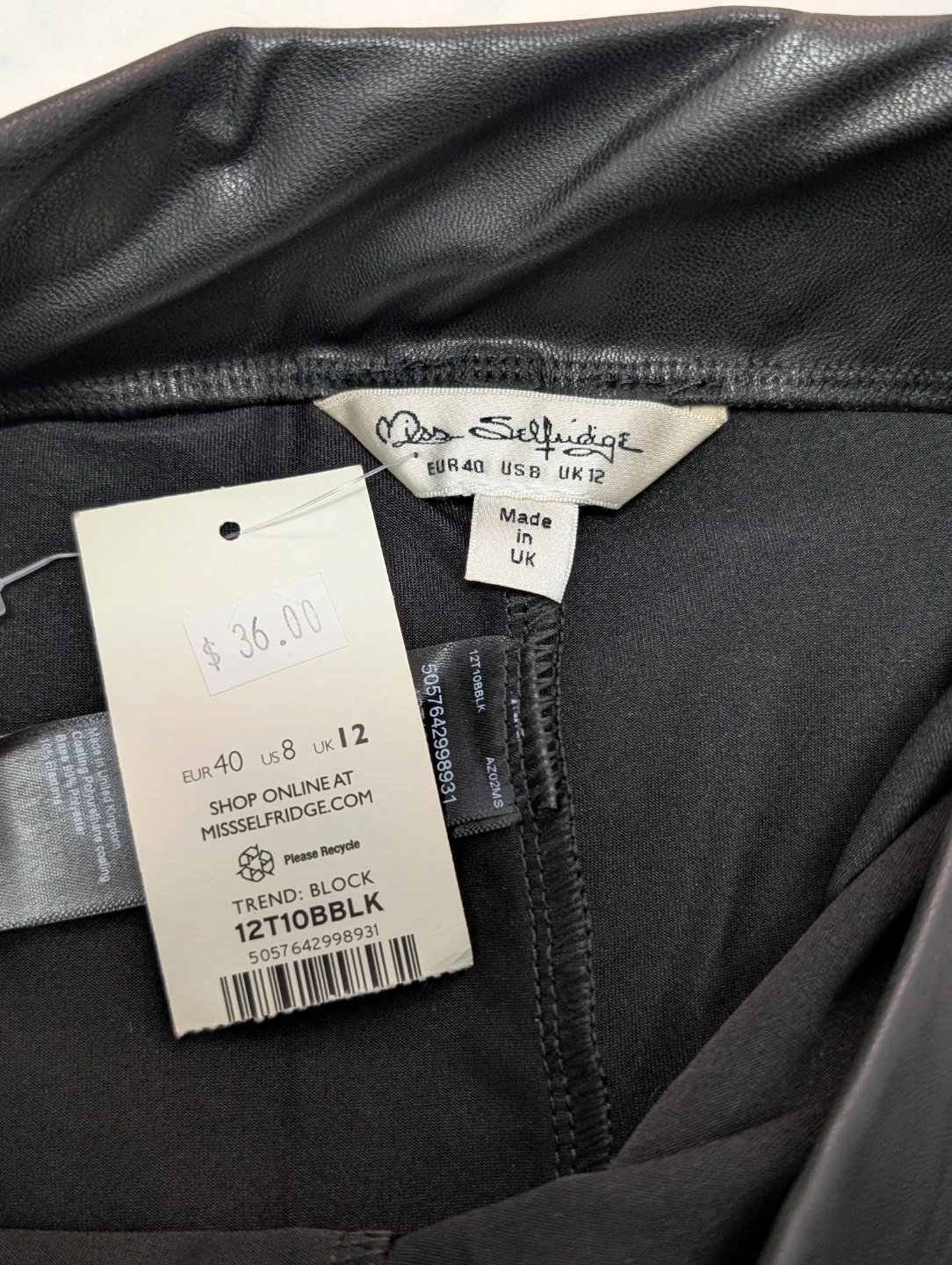 Selling a new pair of Miss Selfridge faux leather leggings in black. They're a US size 8 and UK size 12. Originally bought for $36.00!