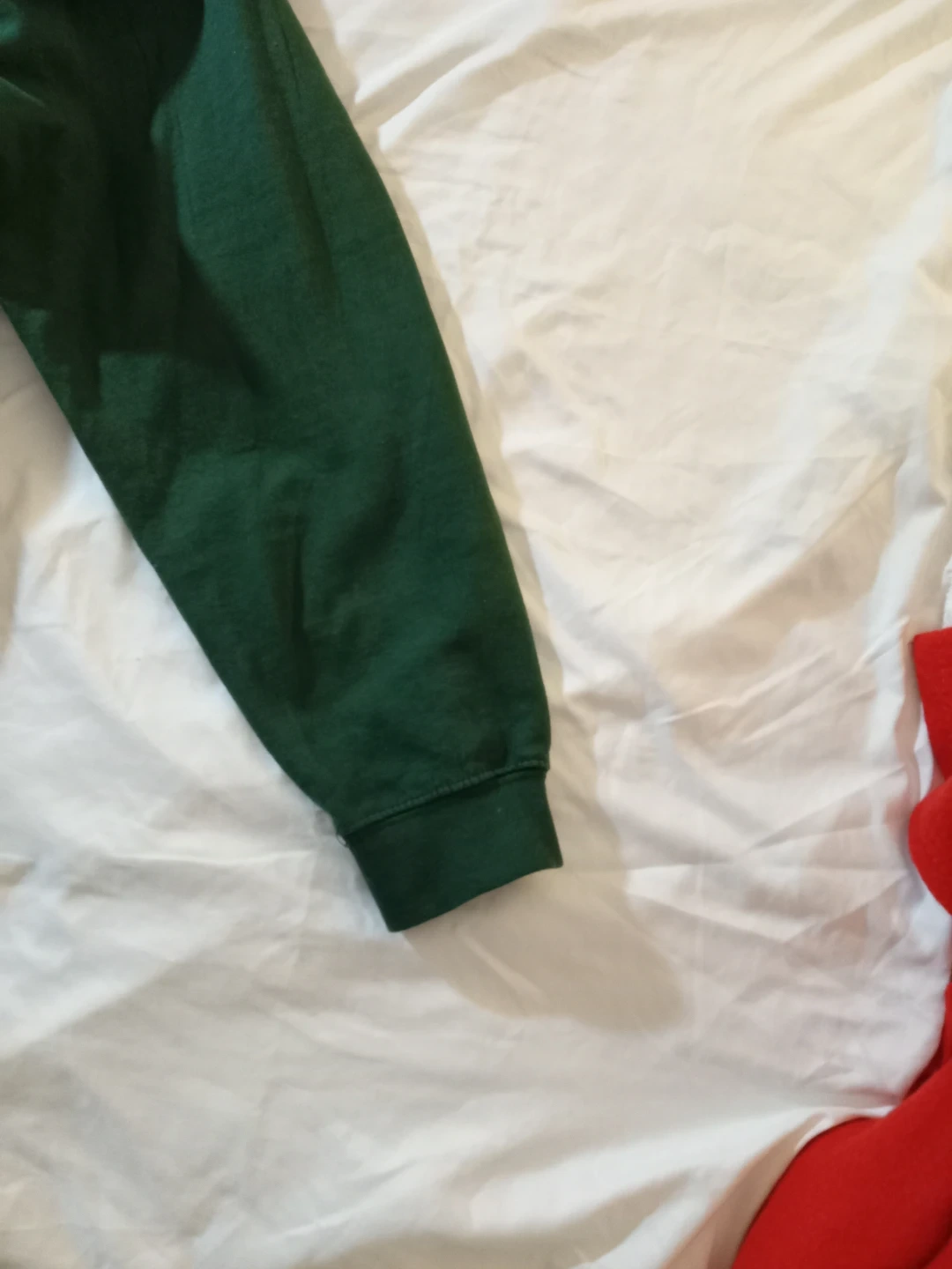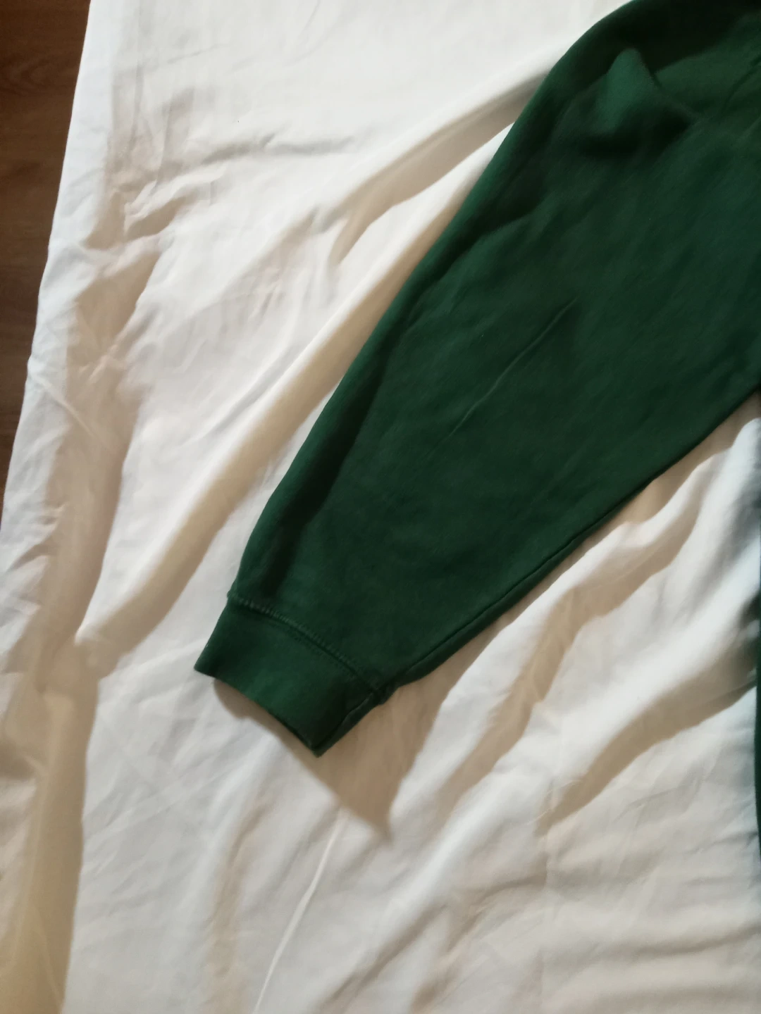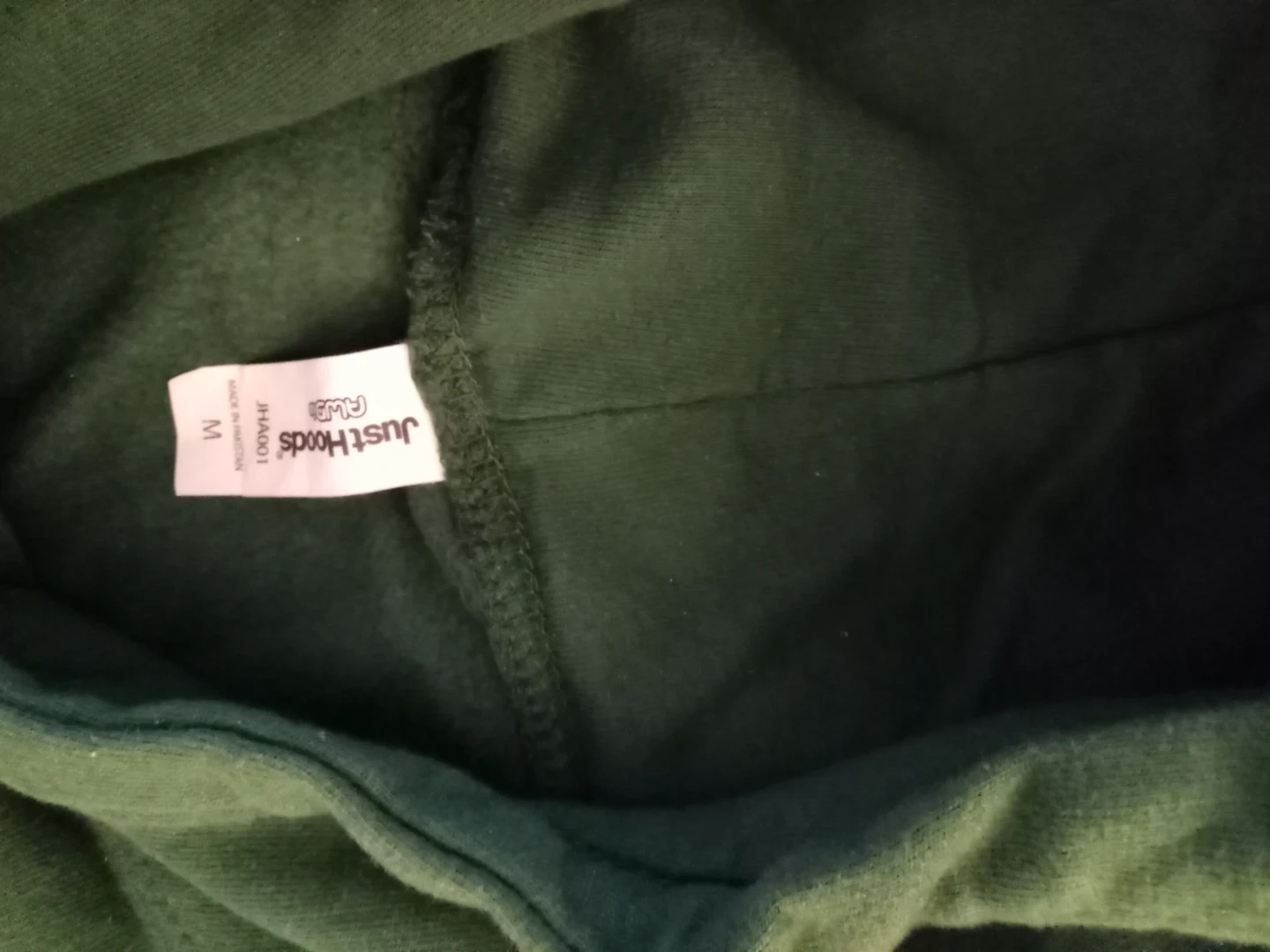 This is a green hoodie from Just Hoods with 'MILF HUNTR' printed on the front. It's a size medium. Made in Pakistan.