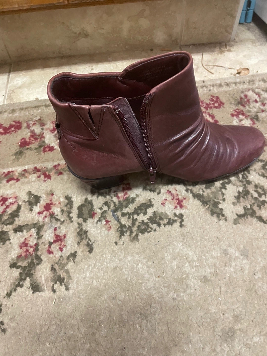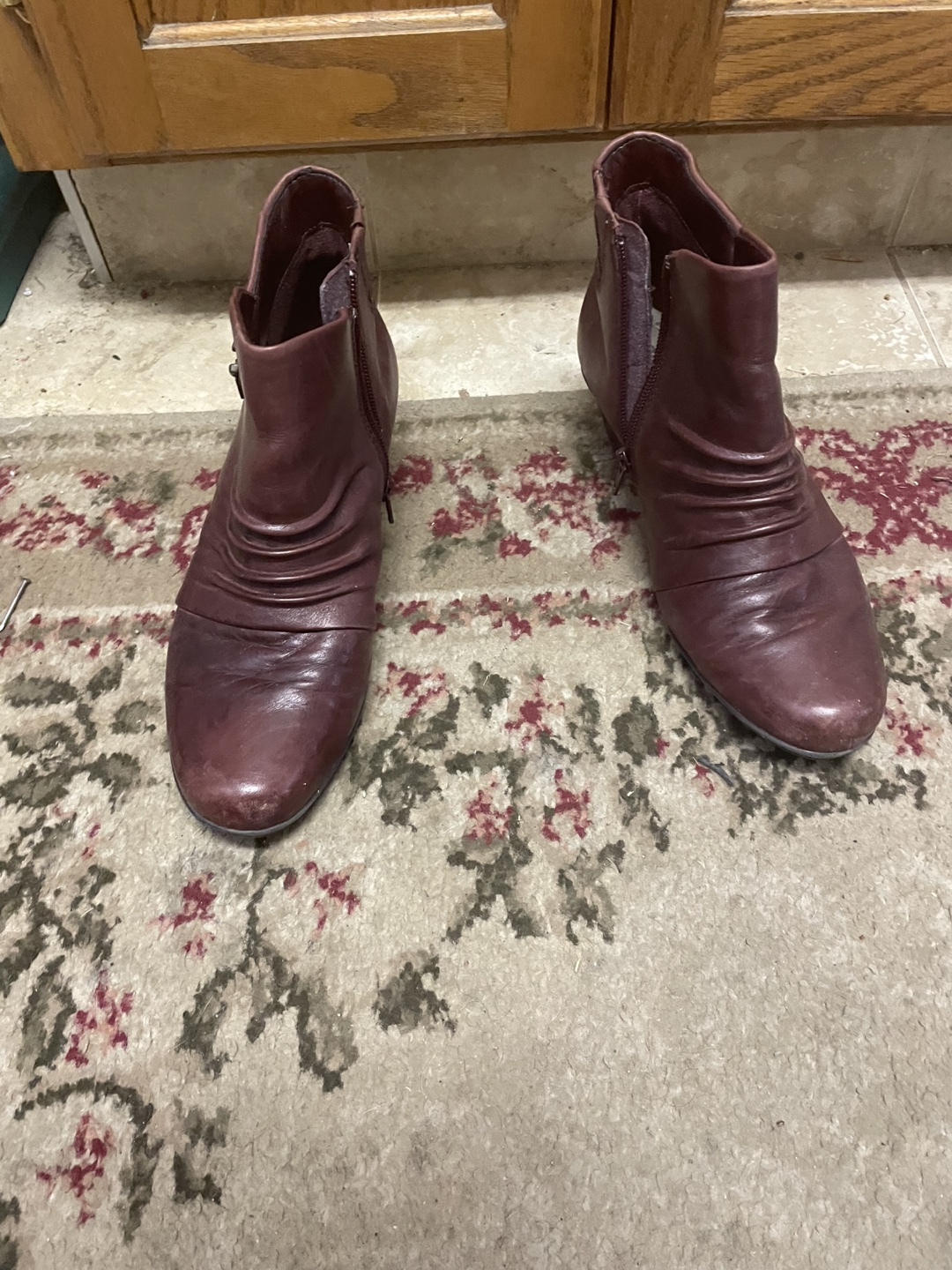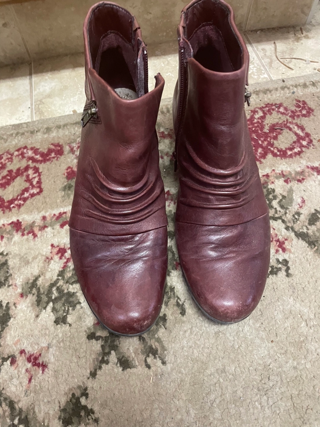 Selling a pair of Earth brand ankle boots in a lovely merlot colour! They're the Pegasus model and made of leather. These have a side zipper on each side for easy on and off. Please note that they are size 8 have been used still in good condition cash only please no e-transfers thank you
