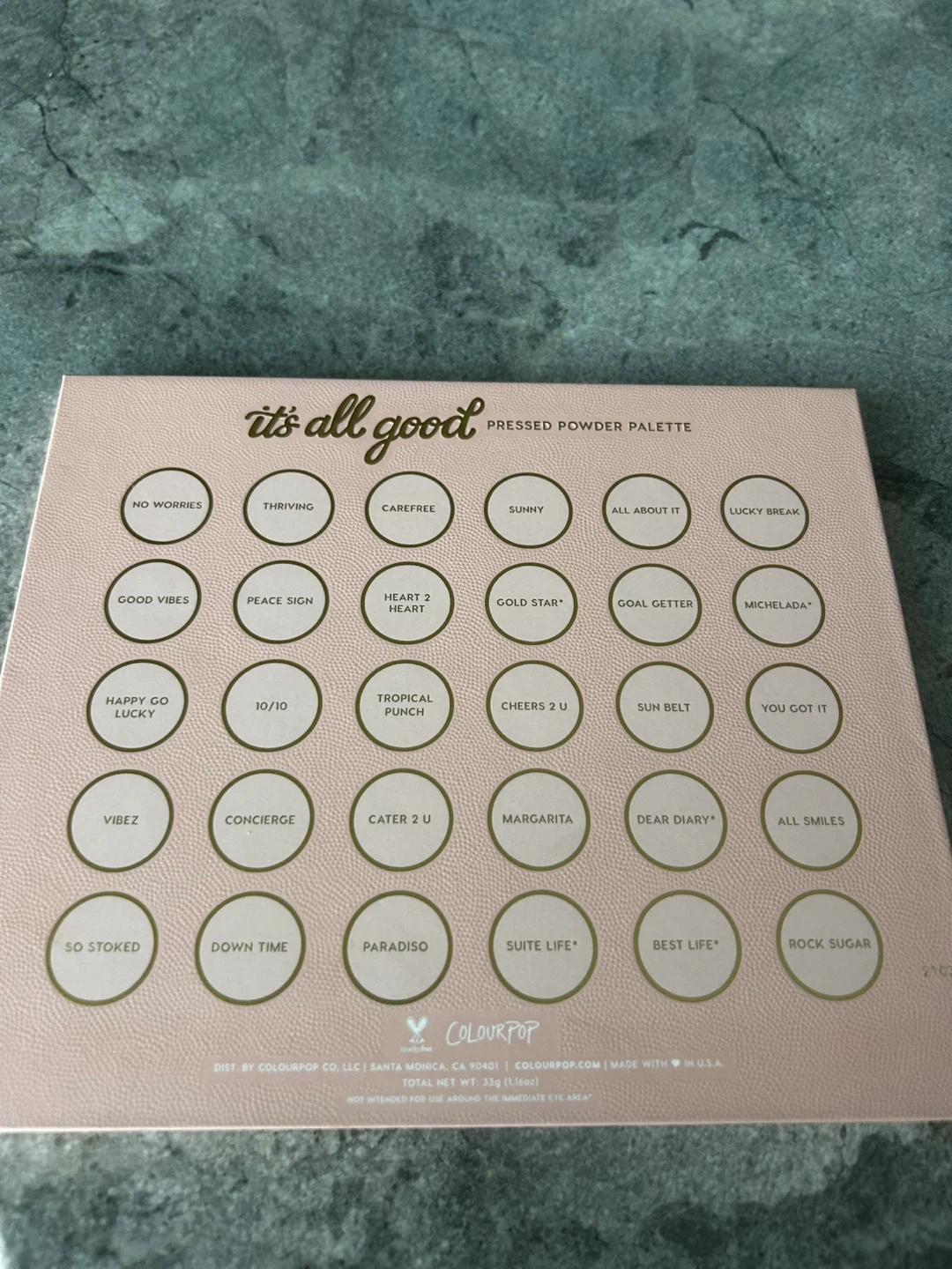 Selling a ColourPop pressed powder palette called "It's All Good"! This palette features a variety of shades, perfect for creating different eye looks. Lots of colours to choose from!