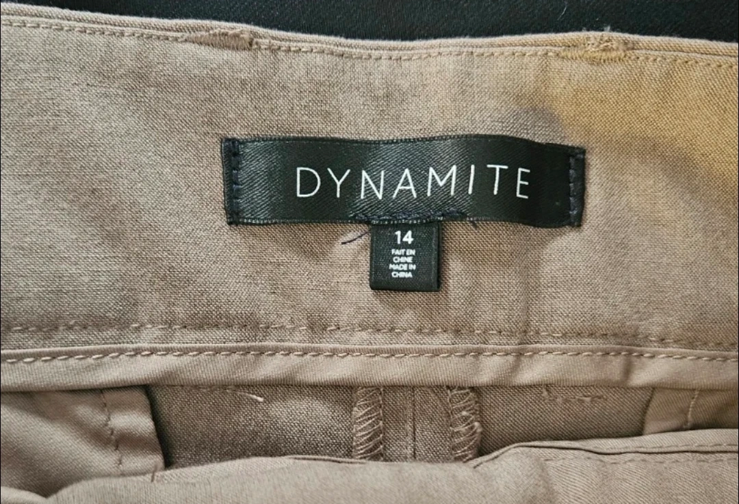 Selling a pair of Dynamite dress pants in size 14 They're in great condition and ready for a new home! The pants are a neutral beige colour, perfect for pairing with any top.