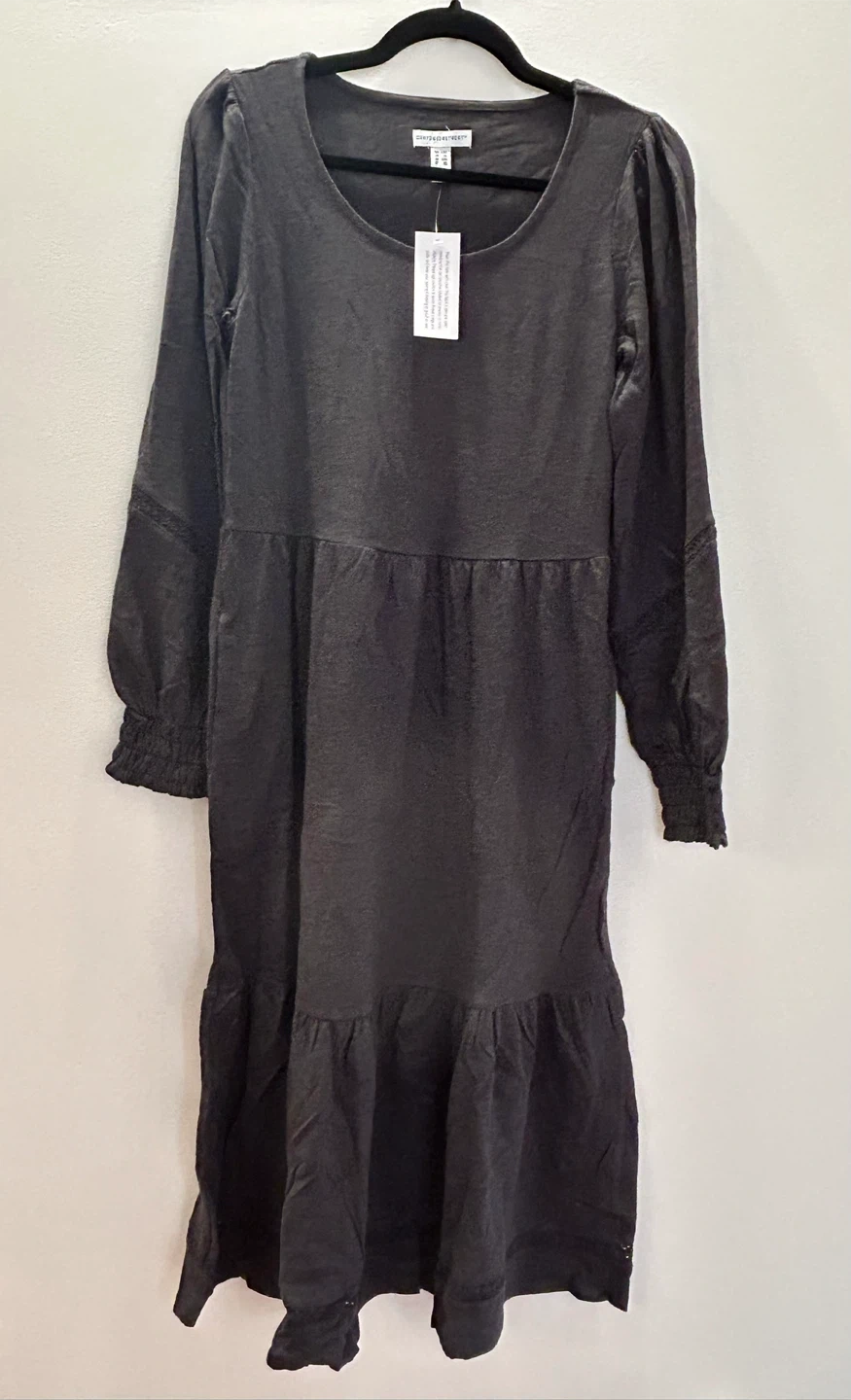 Here's a cute grey dress from Canyon Retreat in size XXS but fits size S-M It has long sleeves and a tiered design. Perfect for a casual day out!