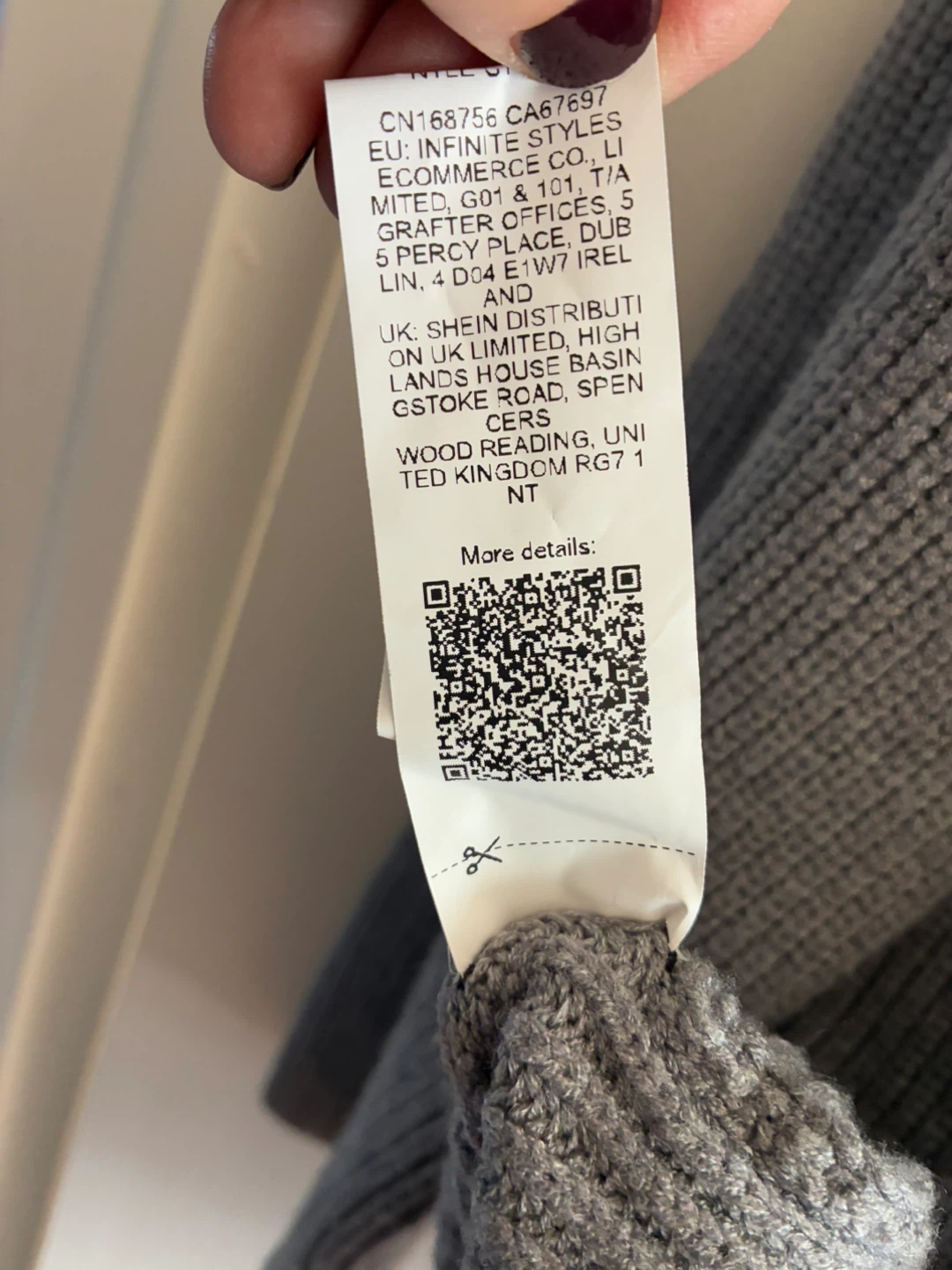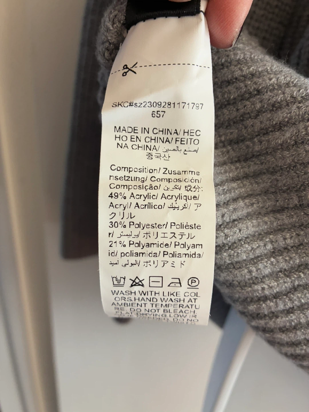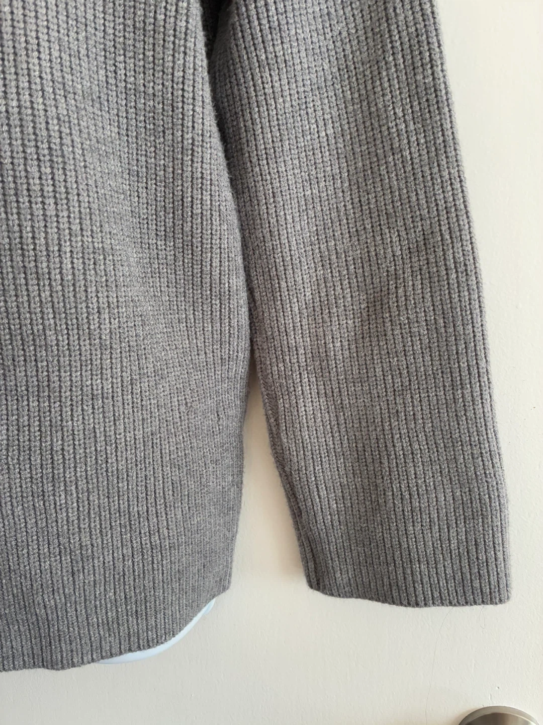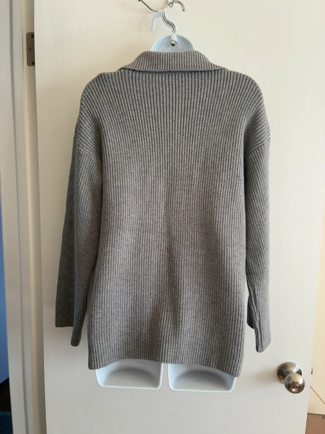Cozy gray knit pullover from SHEIN! This sweater features a stylish quarter-zip design and is made from a comfortable blend of acrylic and polyamide. It's a size small and in great condition, ready to keep you warm!