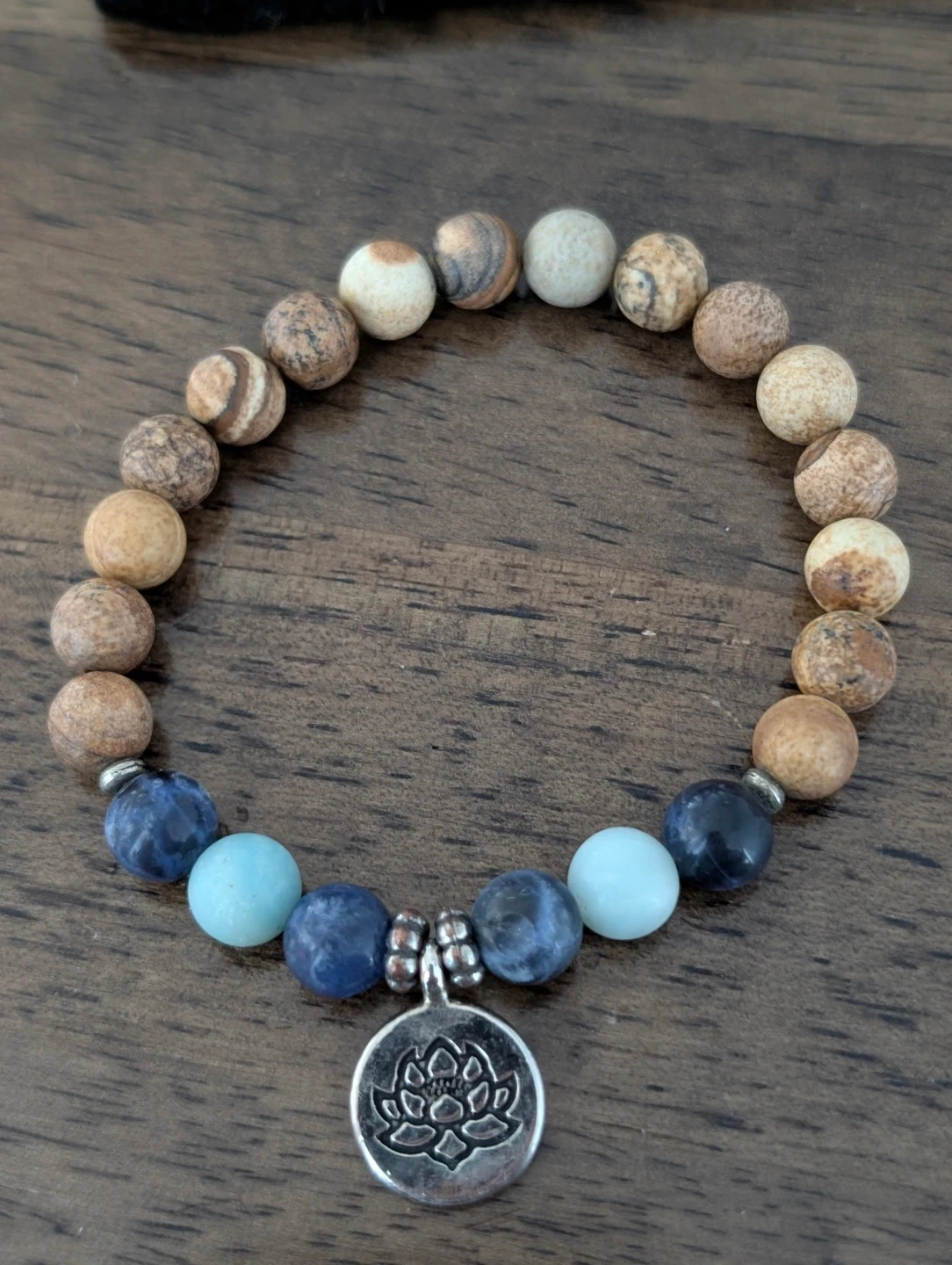 Prana Heart Mala Bracelet - Picture Jasper, Sodalite & Aqua